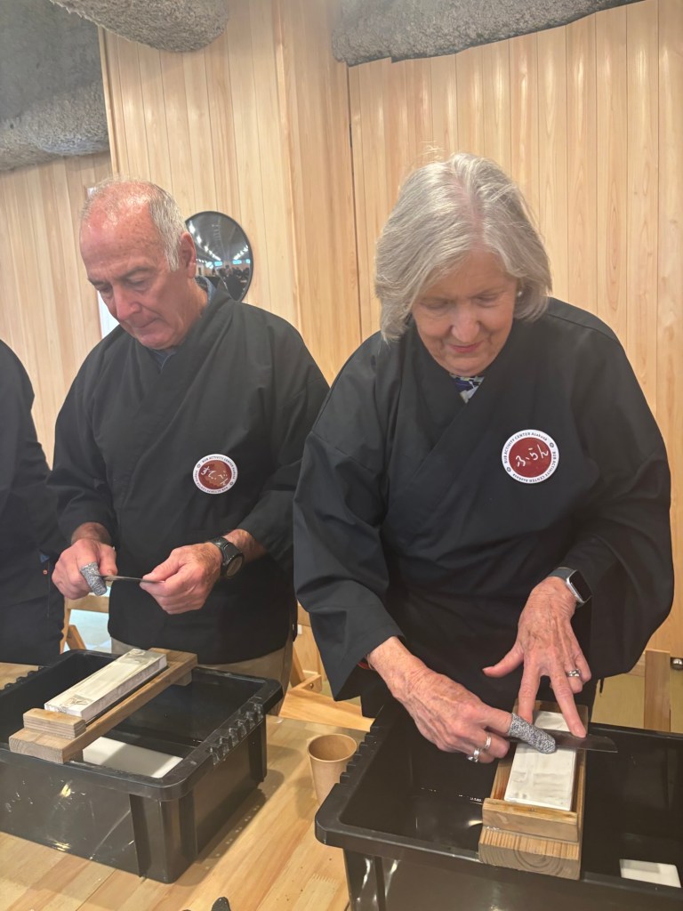 Back to the sharpening table to do the other side. But first we had to pass the ‘slice the paper’ test. I passed as did Steve.