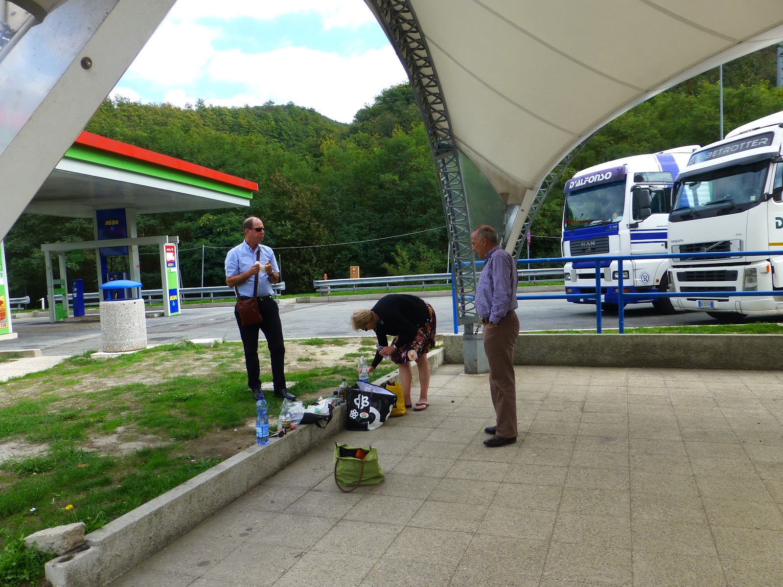Well we set off from San Gimignano at around 9 and drive Steve style along the coast of Liguria before heading north near Genoa. The drivers were crazy but fine. The Autogrills predictable and serving lots of coffee, panini, pastries and selling crap like pink pigs and old CD’s. We had a little picnic by the side of the road at an Autogrill. We jumped back into the car and continued on to Aosta. A nice ski town with lots of people out to have fun in the piazza on a Saturday night. Picked a trattoria for dinner. Good dinner, friendly people .