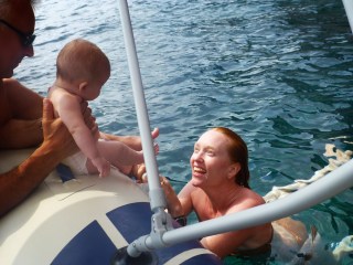 SO i left him to it and walked back towards the hotel and found a more sedate rocky cove to enter the water. It was quiet and I was the only one swimming. Its funny…..I would never do this in Australia. with sharks and rips etc. Here my greatest fear is the STINGER! by the way my face has almost recovered. Mind you the sea urchin spikes in my knee haven’t all fallen out just yet!