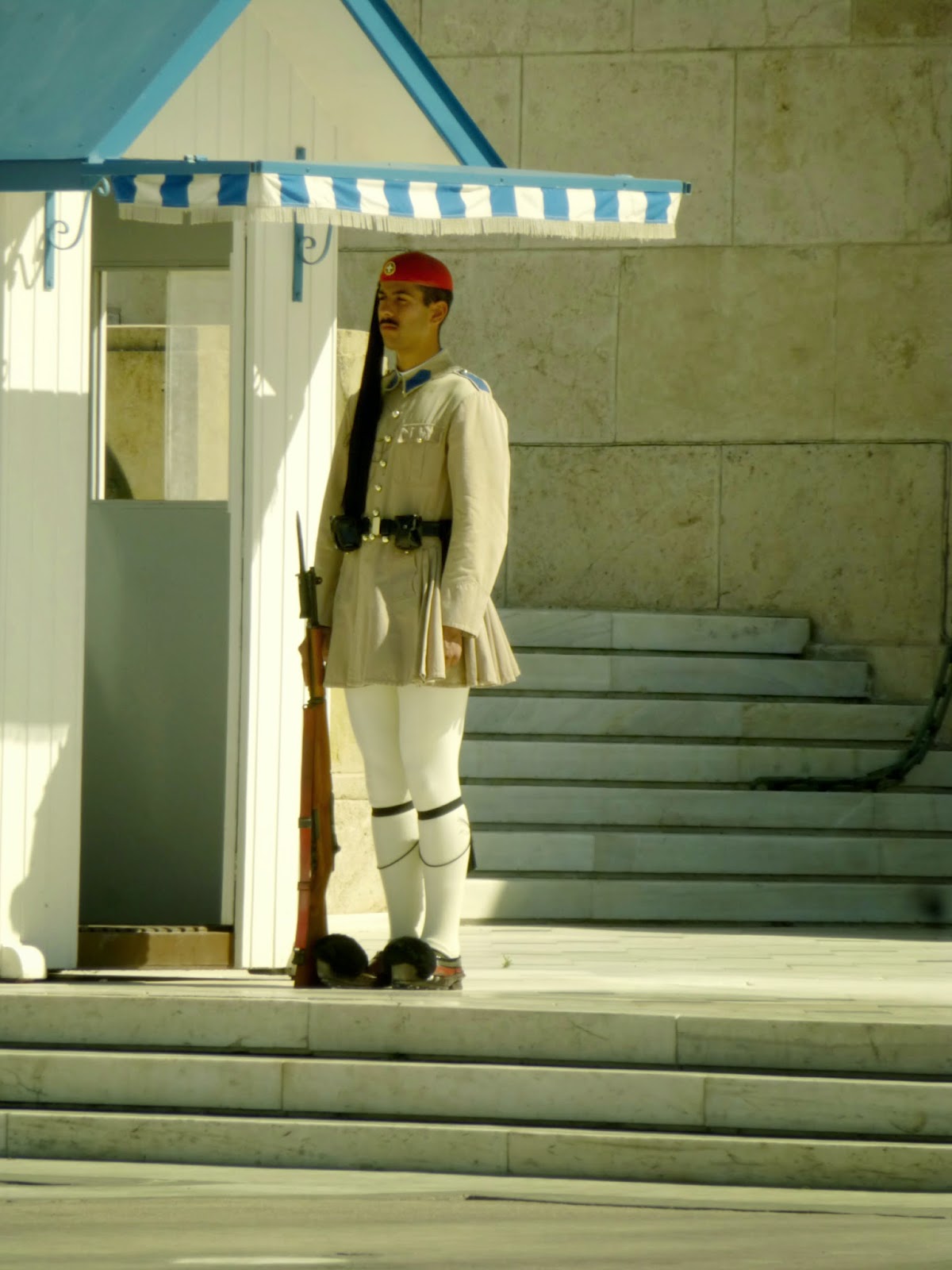 Up at a reasonable time and down to breakfast to find Jill not good at all and has called the doctor to the hotel. So a slow start and then a little walk around the Plaka. She felt a bit better and we went along the streets towards Parliament to see the changing of the guards. Beautiful day.
