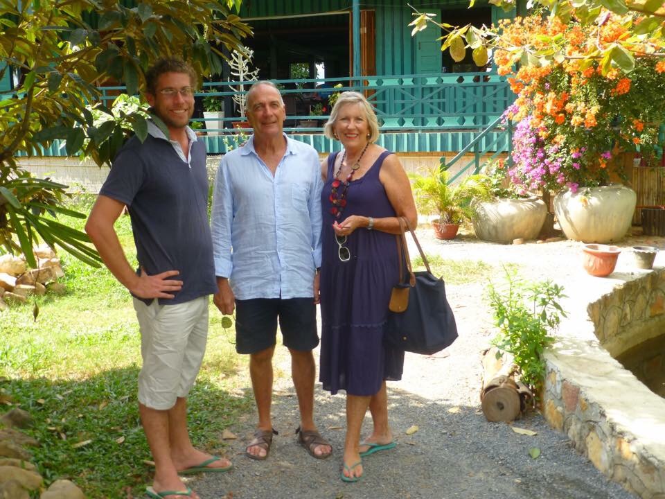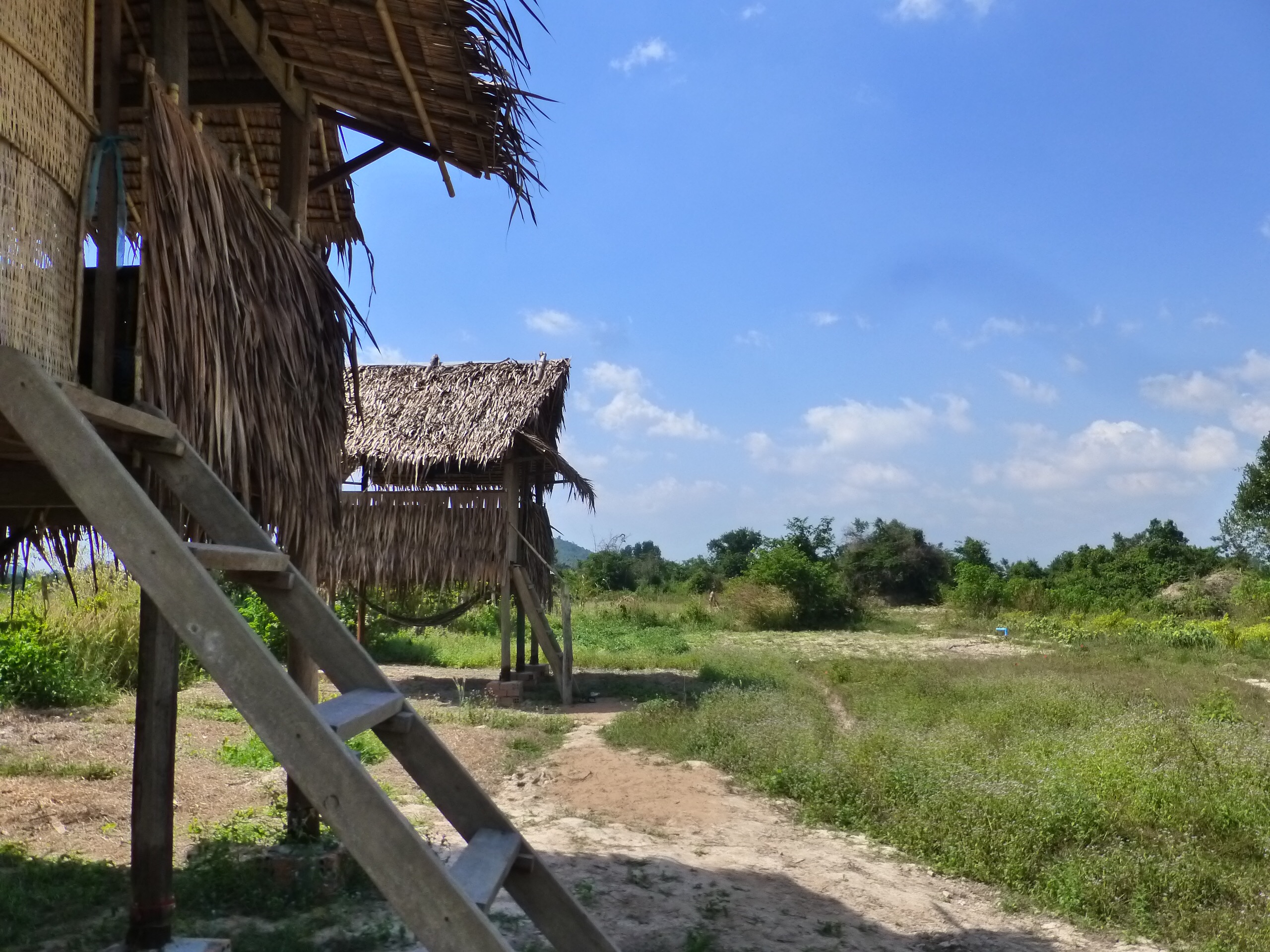 There is an open kitchen, their house next door is just a room and verandah up off the ground. Another thatched area for their things. Then a short distance away 3 thatched huts on stilts, a toilet and shower area – thatched with tiled floors. No electricity. Powered by cow dung ! Garden fertilizer from the toilet. Self sustaining and clean and neat.