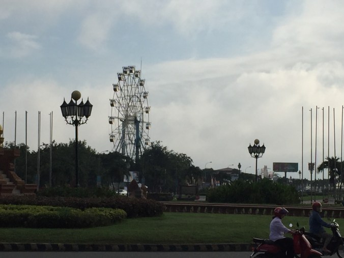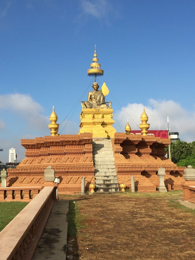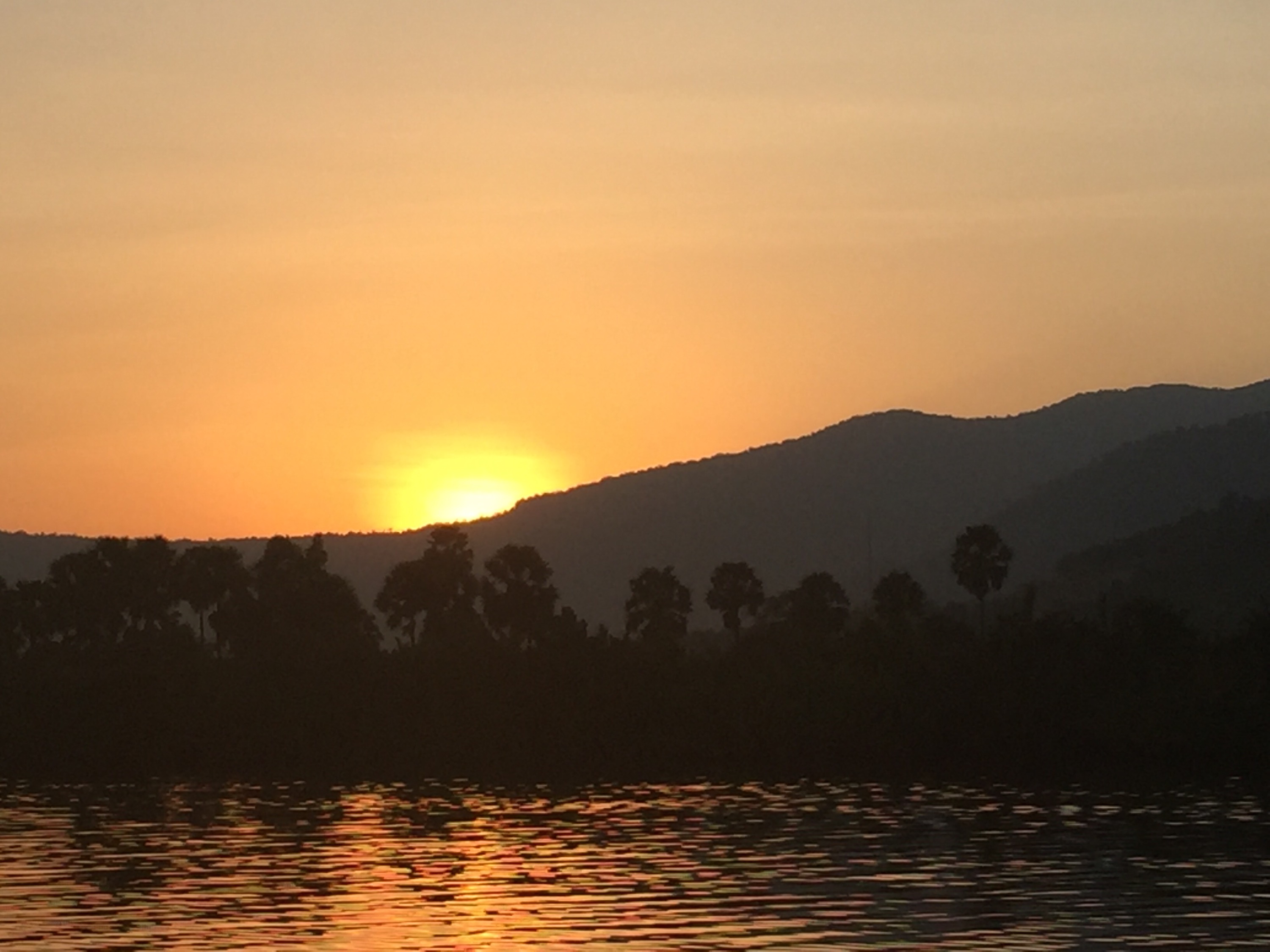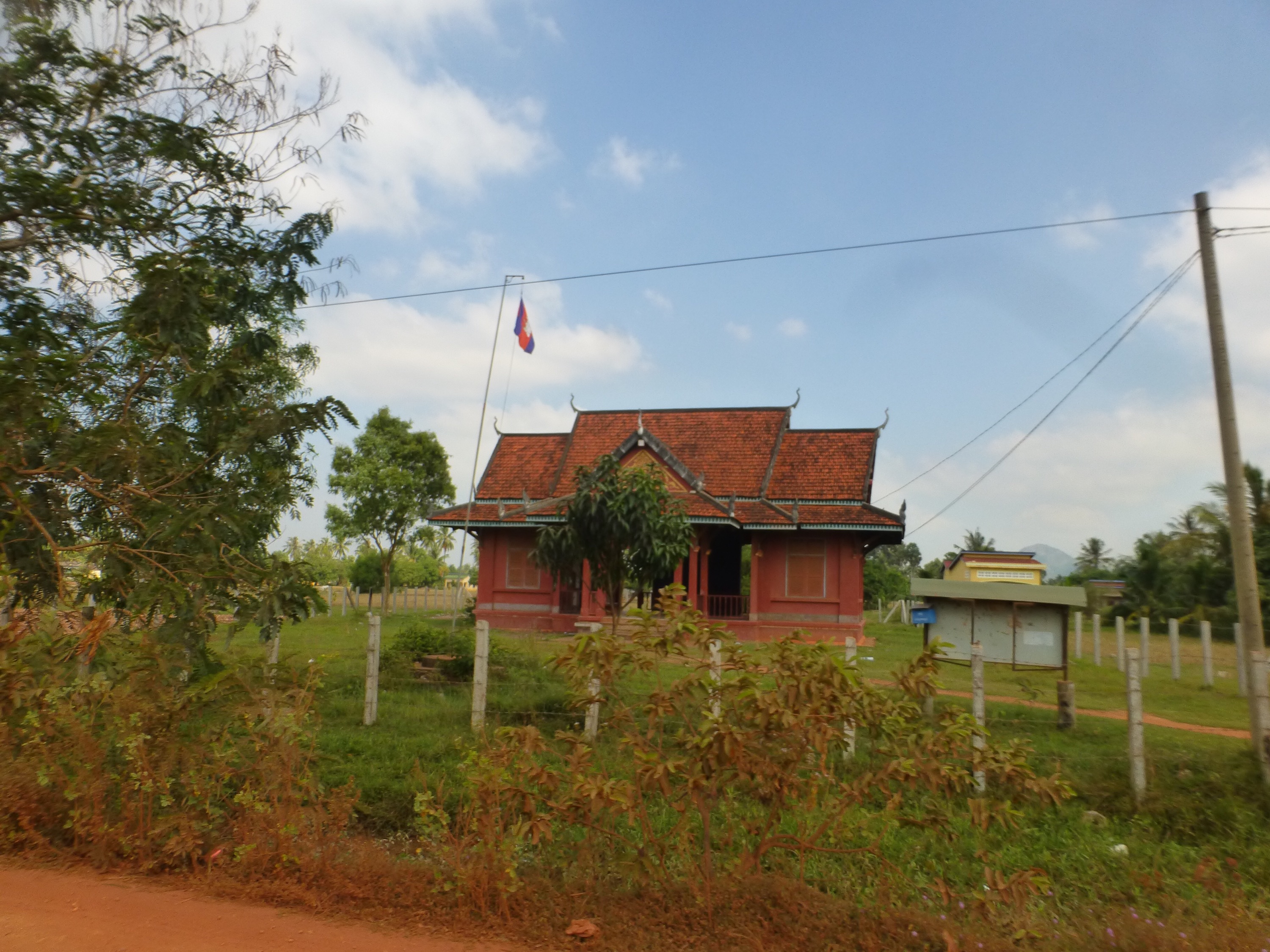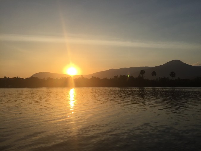 We eventually turned off at a lake know as the secret lake. It was man made during the Khmer Rouge time , hand dug by the Cambodians they had taken captive. It looks lovely now surrounded by trees and hills in the background. It doesn’t even hint at the blood that was shed in its making. We had to get out of the tuk to get up the hill at the end of the causeway and then continued along the road past fields with workers toiling in the heat.