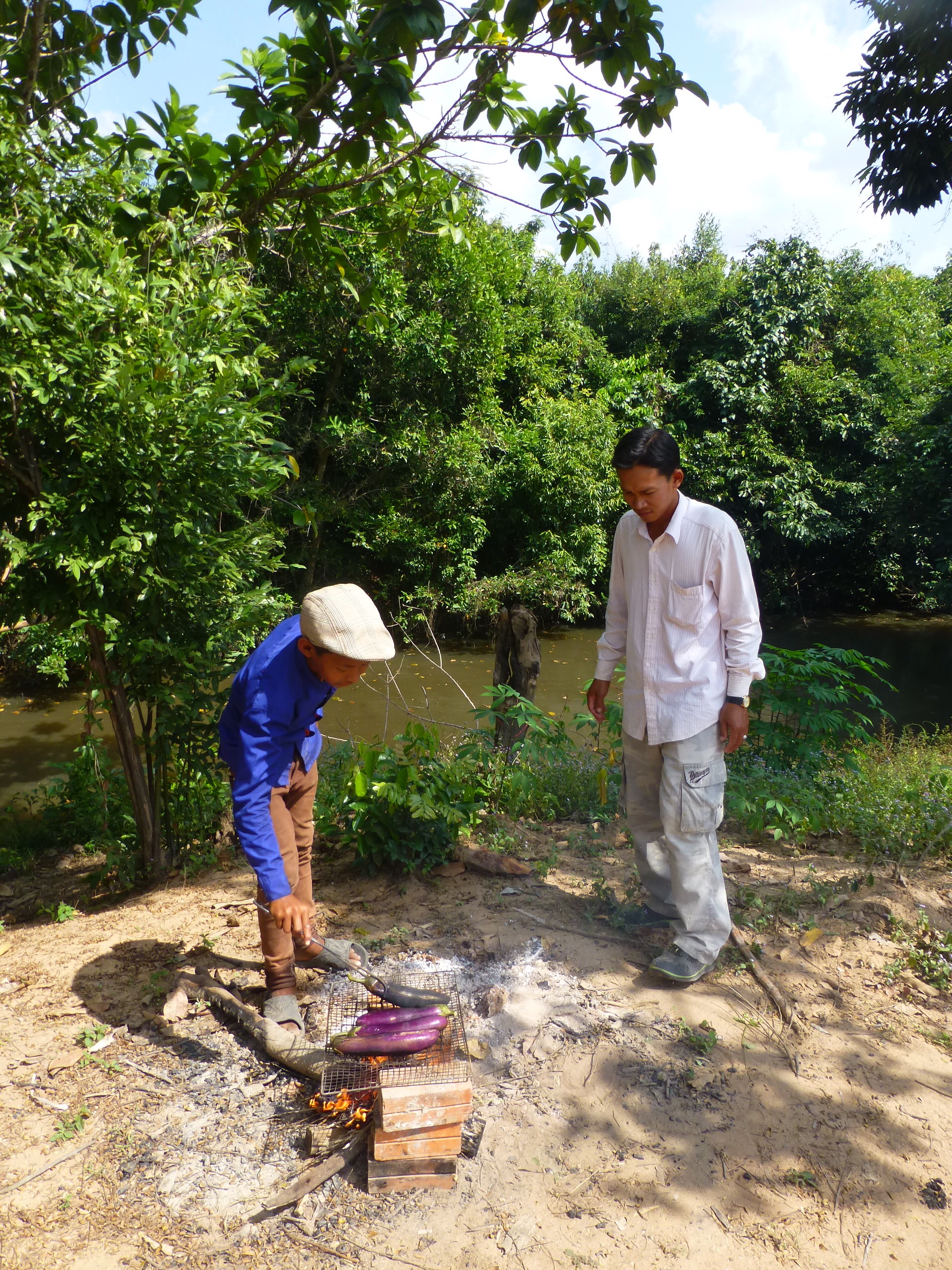 Then Sok came back and with an offsider his young neighbour – a boy 14 who looked about 10. He was so cute. They walked us around the small but very productive farm. He used to have a restaurant in Kampot but decided he wanted to use his own ingredients so moved here with his English wife and they live very simply and run a cooking school with very basic amenities.