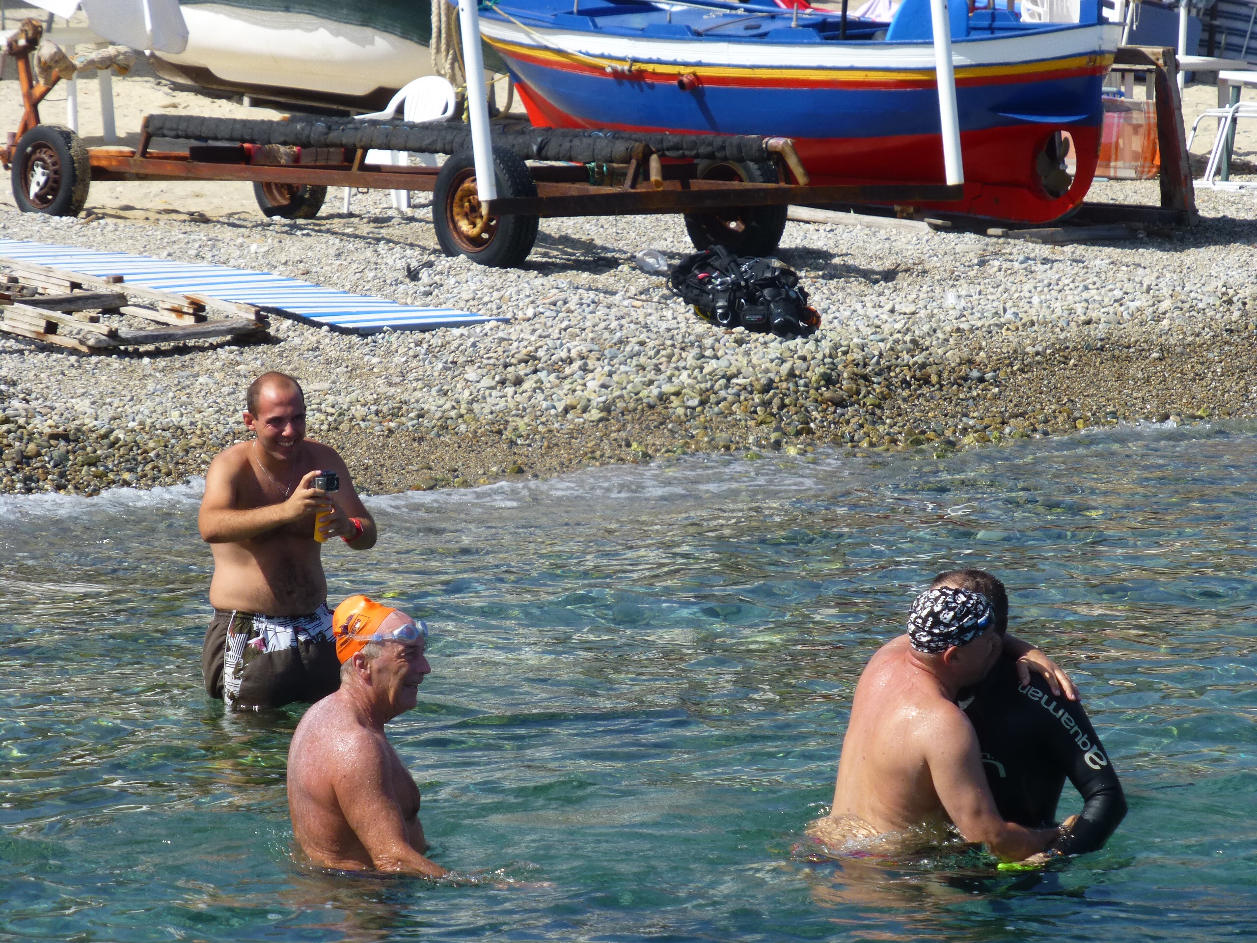 Carlo Francolini and Guiseipp Montesanti. They turned out to be great guys. Friendly, funny and just the right pace of swimming. Guiseipp was a little faster than Steve – and 15 years younger! Carlo was slower. So they swam together and bonded as you do when you are sharing a goal.