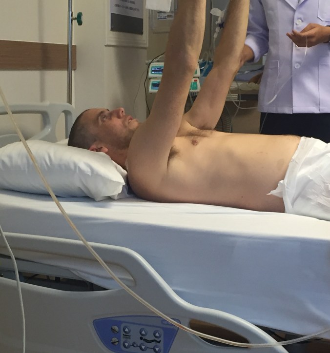 My friend Liz ( who we met on our first swim trek) immediately conferred with her team and was in touch with Dr Nu. Liz also confirmed that we had a great team looking after Pete. She said they were trained to Australian standard and we were receiving the best care we could over here. Reassuring to say the least.