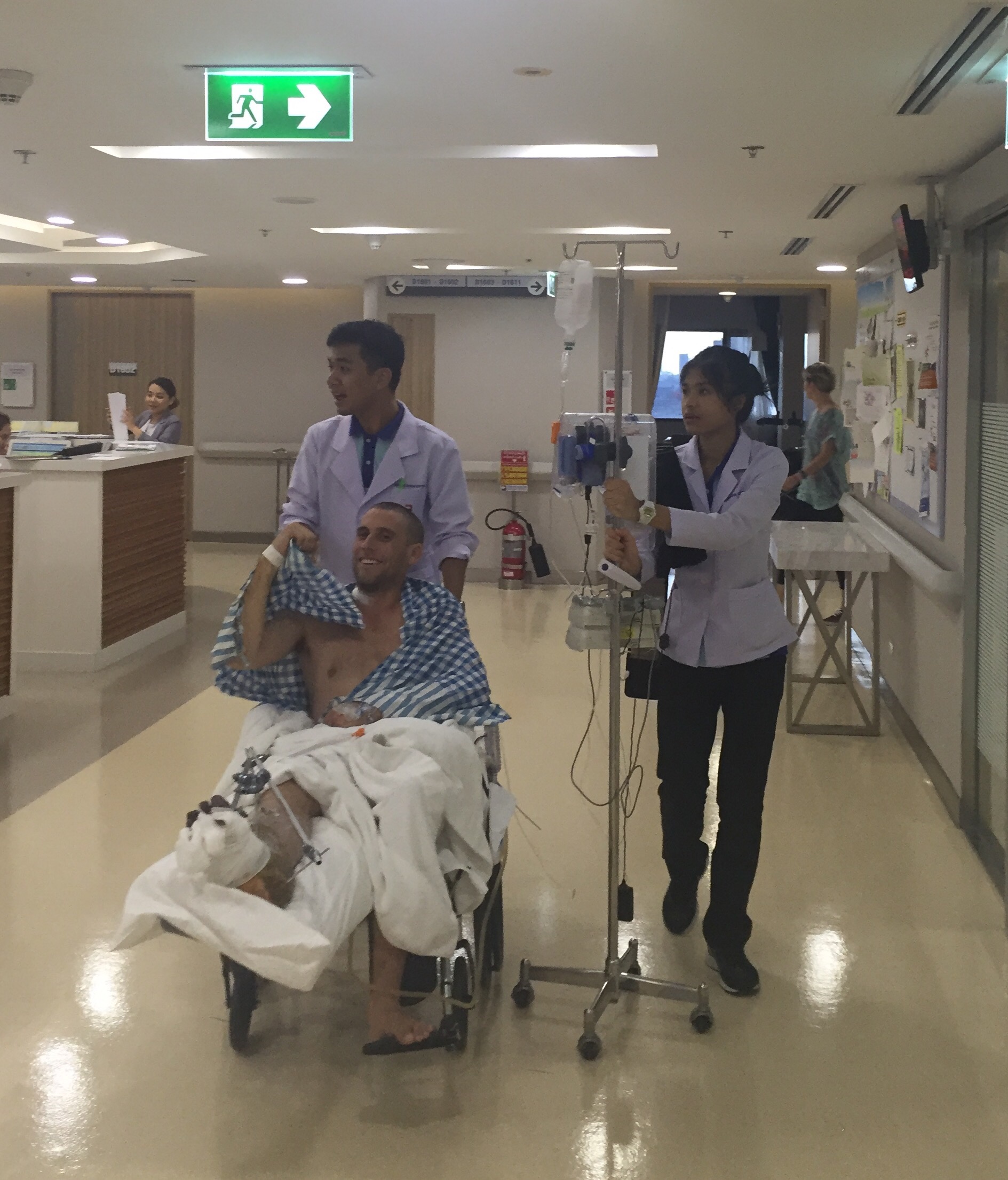 My friend Liz ( who we met on our first swim trek) immediately conferred with her team and was in touch with Dr Nu. Liz also confirmed that we had a great team looking after Pete. She said they were trained to Australian standard and we were receiving the best care we could over here. Reassuring to say the least.