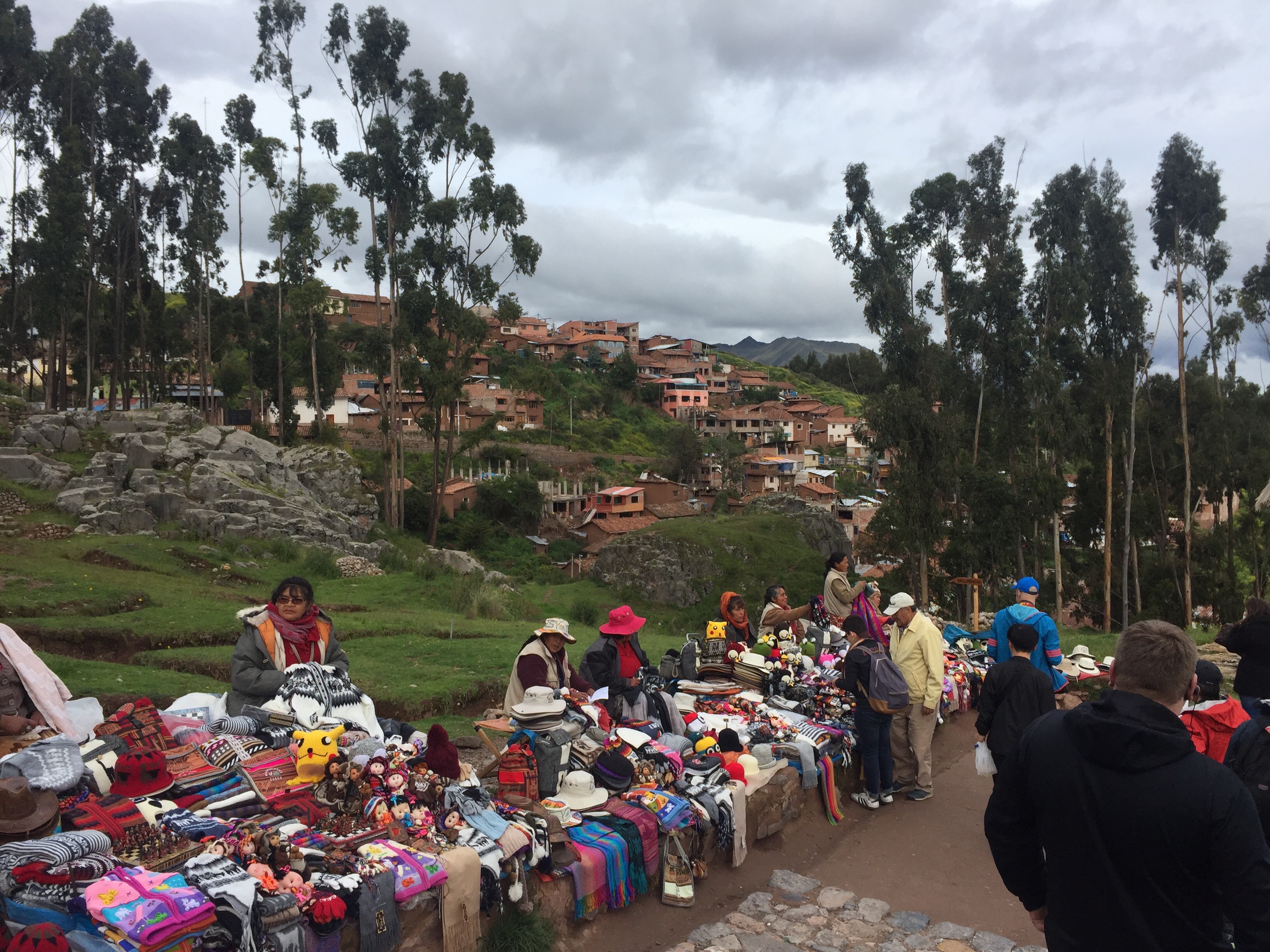 Saqsayhuaman ( “sexy woman” as Flora called it !) our first stop we saw great evidence of the building skills and also the effect altitude has in your climbing! Puffing heavily we made it up to the top and were rewarded with a view back over Cusco. Reassuringly everyone seemed to be puffing – even those years younger than us. A walk down and across a large green flat area to the car park. We were farewelled by men, women and children all trying to sell up some bright and beautiful and possibly made in China. Can’t escape it!