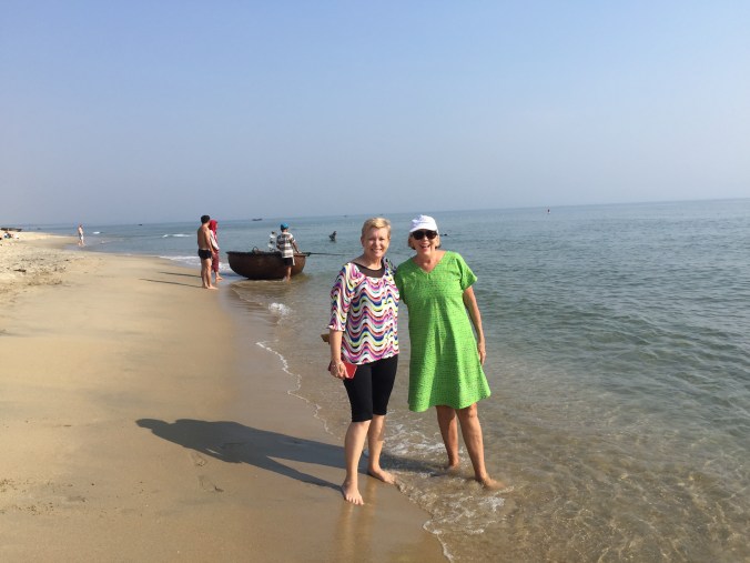 Trinh made us coffee and then a taxi arrived for the ten minute drive to An Bang Beach. I’d had a swim yesterday and convinced the girls an early morning dip would be refreshing .