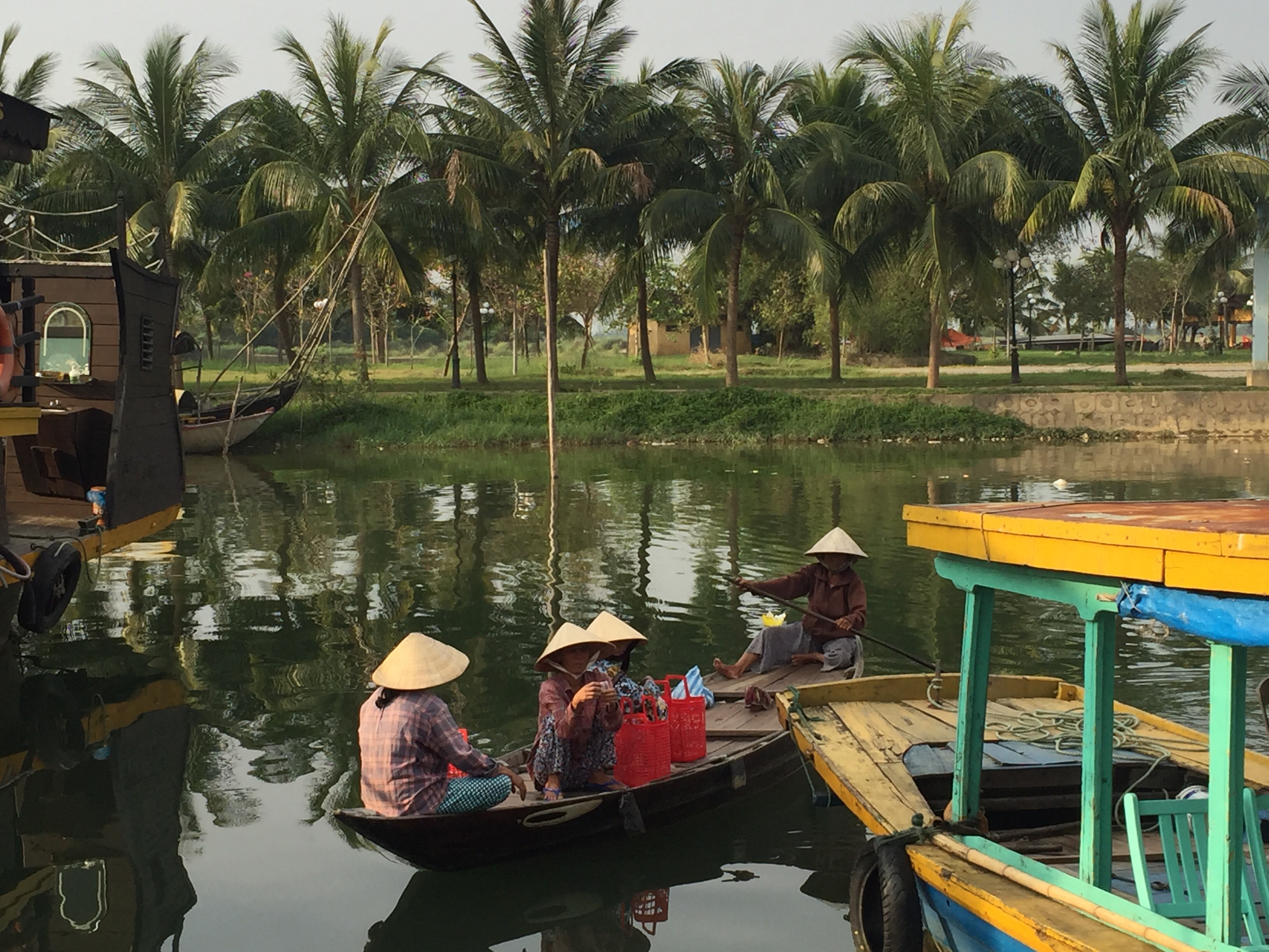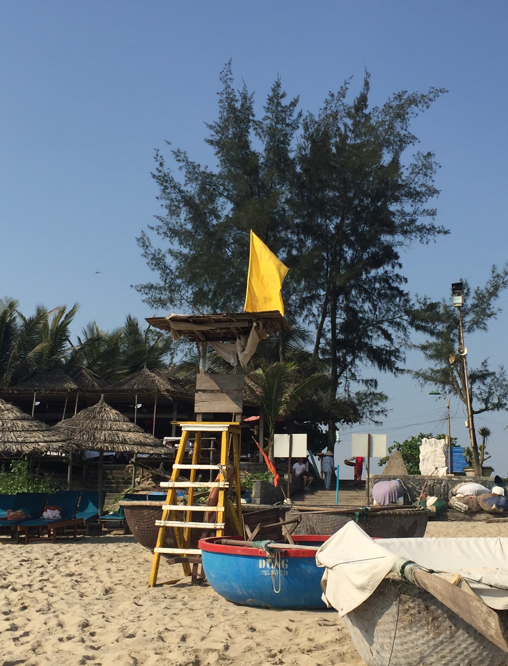 Trinh made us coffee and then a taxi arrived for the ten minute drive to An Bang Beach. I’d had a swim yesterday and convinced the girls an early morning dip would be refreshing .