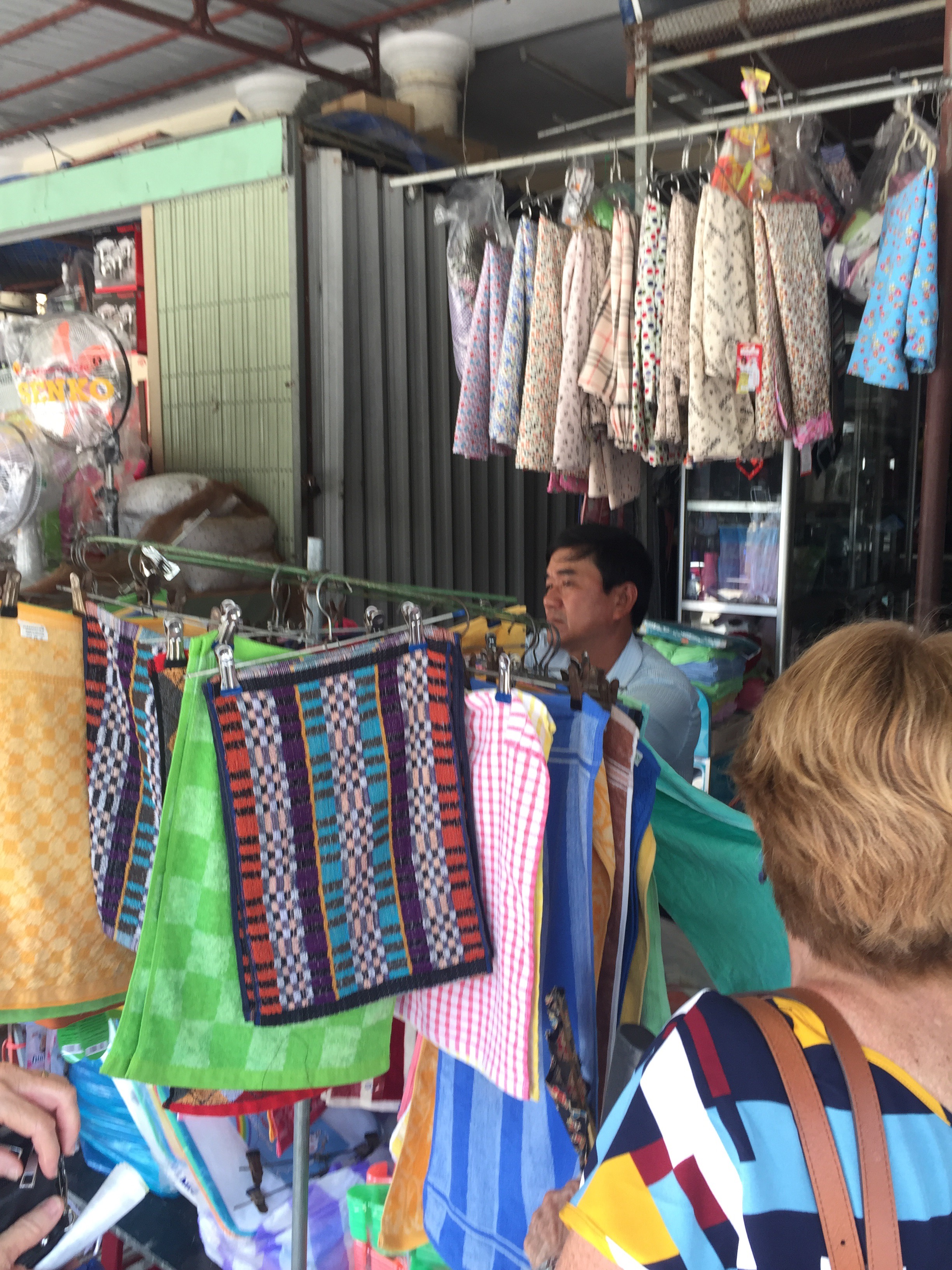 Last excitement of the day was definitely settling up our payment to Trinh. It averaged $35 a night for our rooms and breakfast and lunch. The bill for our clothes. $8 for pants and $8 for tops. $15 for dresses. $8 for a kimono. We paid separately for the fabric but it was so reasonable. Thank you Linda for bringing me to this lovely homestay. What fun.