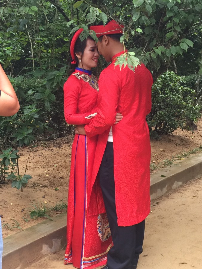 They are gradually paving all the sidewalks. The team were out the gate at our home stay today and a Trinh was not too happy. She was keeping a very close eye on them.
