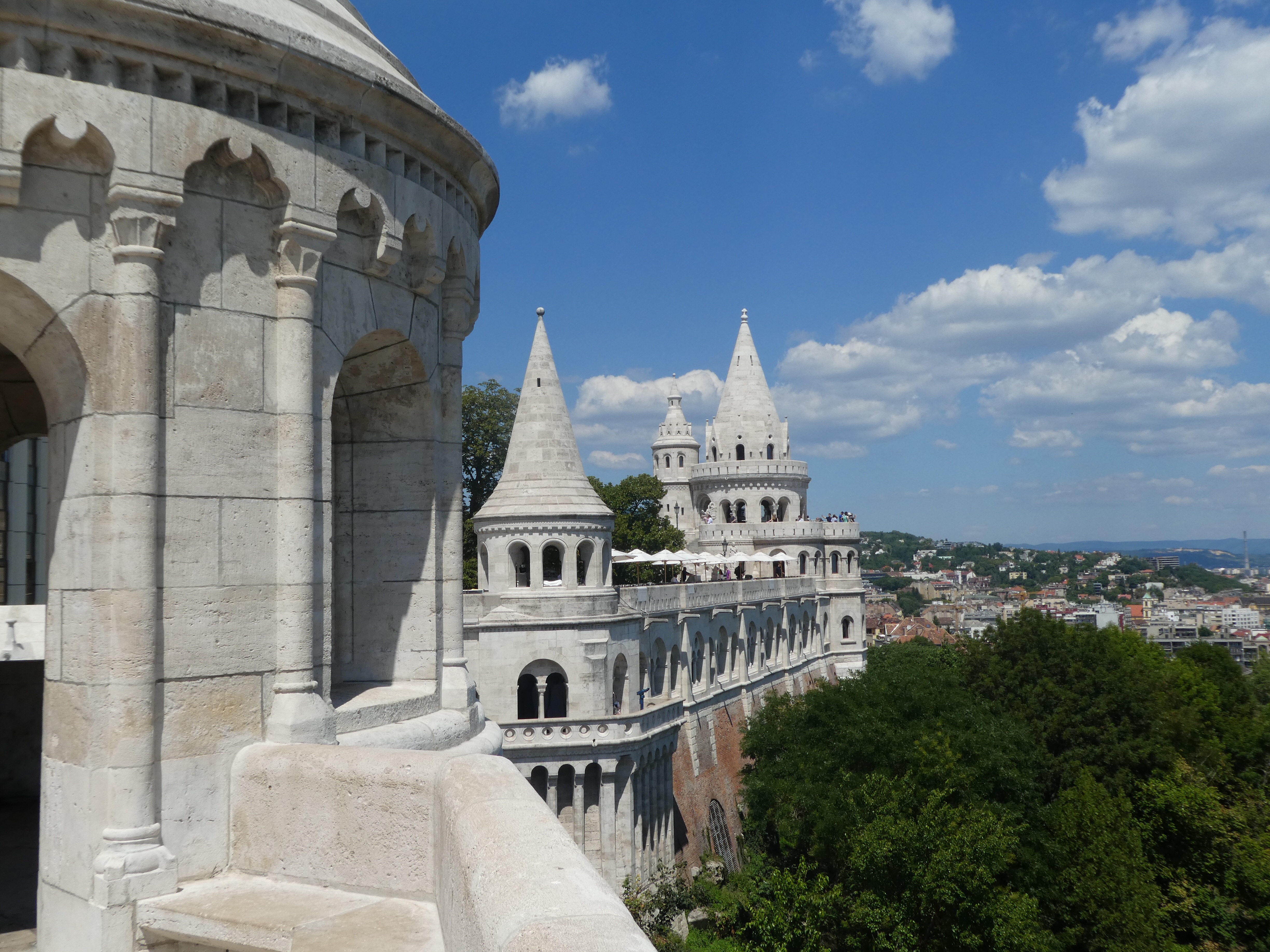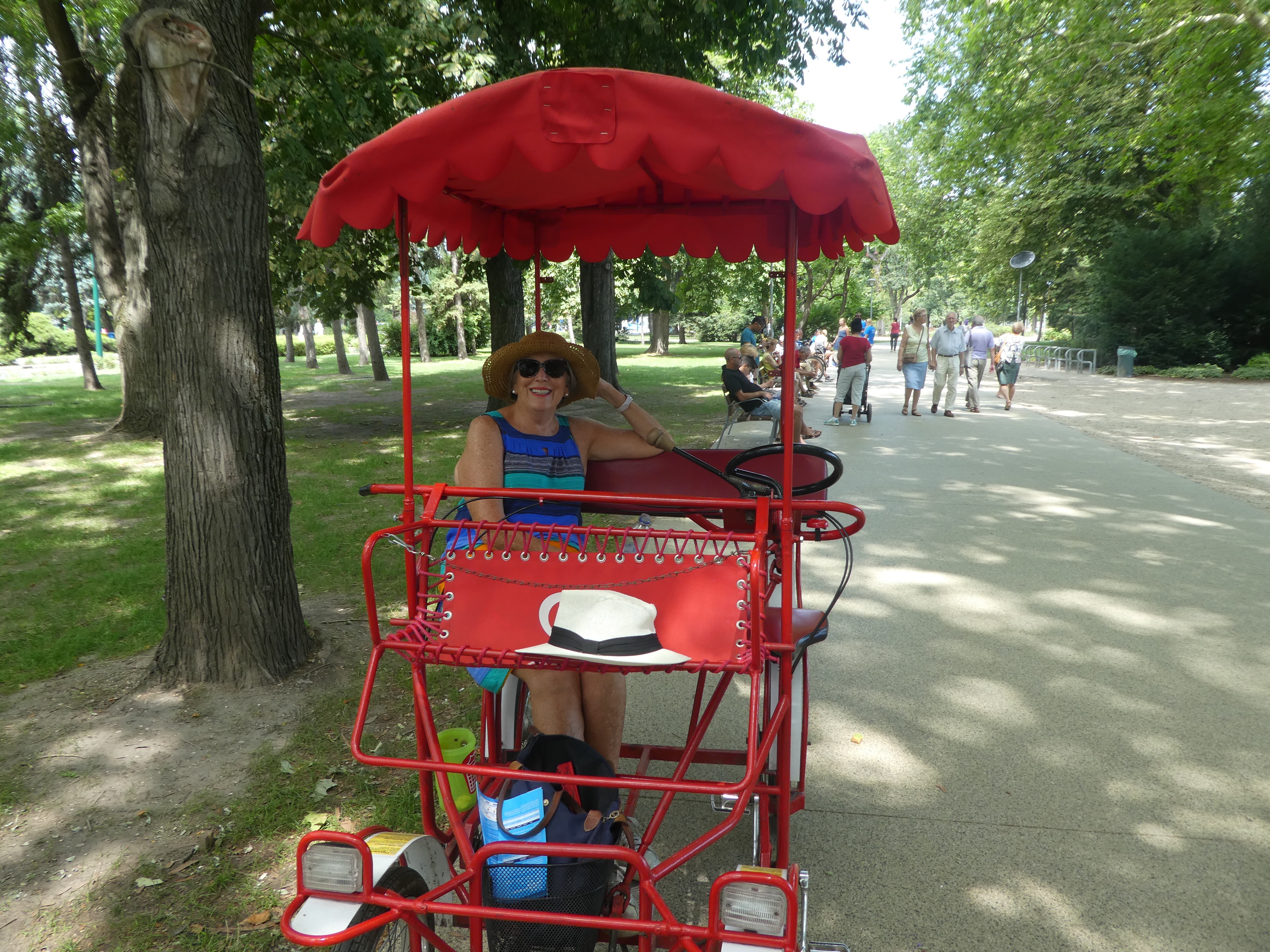 After a lovely casual market lunch we took the tram 6 and to Buda, across the city. We wanted to take a cog tram up the side of the hill overlooking Buda. Fascinating ride up a very steep hill. There is a carriage especially for bike riders with a rack to store bikes. It’s just so steep!
