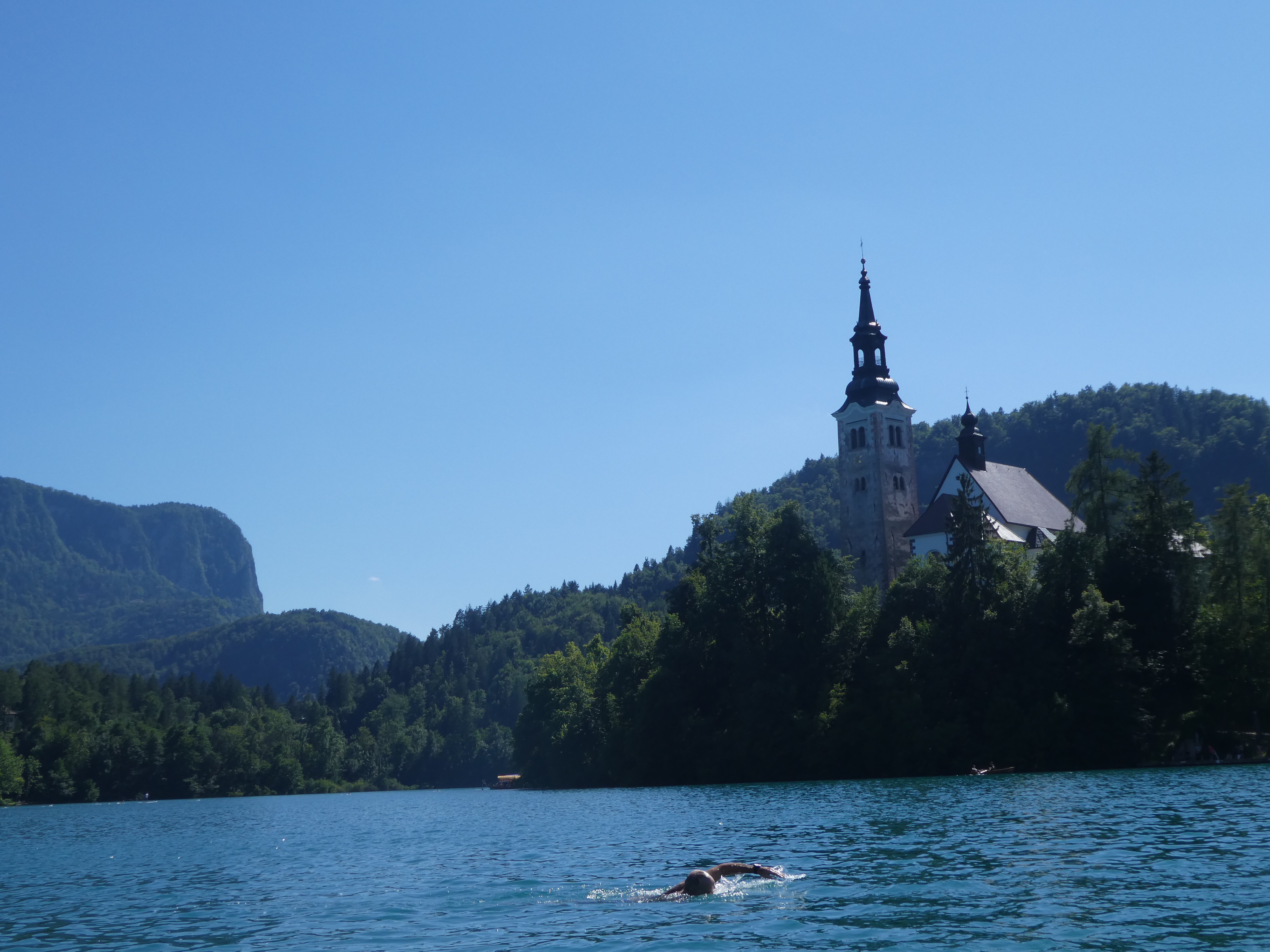 We stopped lake side for a salad and healthy juice as we planned an afternoon swim. We did share one the famous Lake Bled Crema pastries – like a vanilla slice.