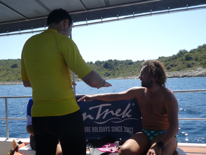 I was getting nervous. The first swim was to be 5 km. Along some coast line and at least 3 crossings from island to island. This can be hard.