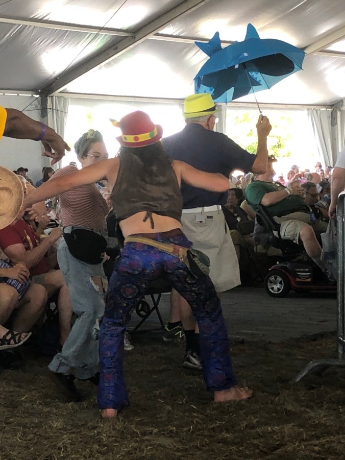 and back into the tent for the Preservation Band. With a warm up Congo line. I had to resist the temptation to dance along along. Though I did ambush one of the ‘dancers’ – though he was very sad looking and unimpressed by my request for a photo.