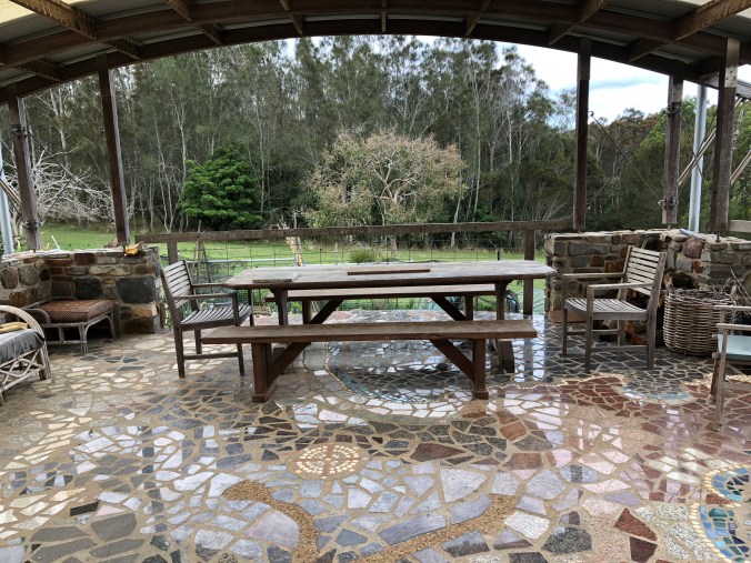 On Saturday afternoon we headed into the Adelaide Hills. Niece Vashti,her husband Jeremy and their 4 children have bought a small farm. It’s not far from Hahndorf , has a creek running through it, wonderful big trees, a dam, 3 alpacas and a very large dog!