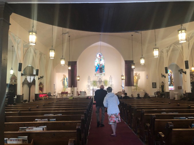 I popped into the Catholic Church as the congregation were arriving. They were so well dressed! It’s Palm Sunday.
