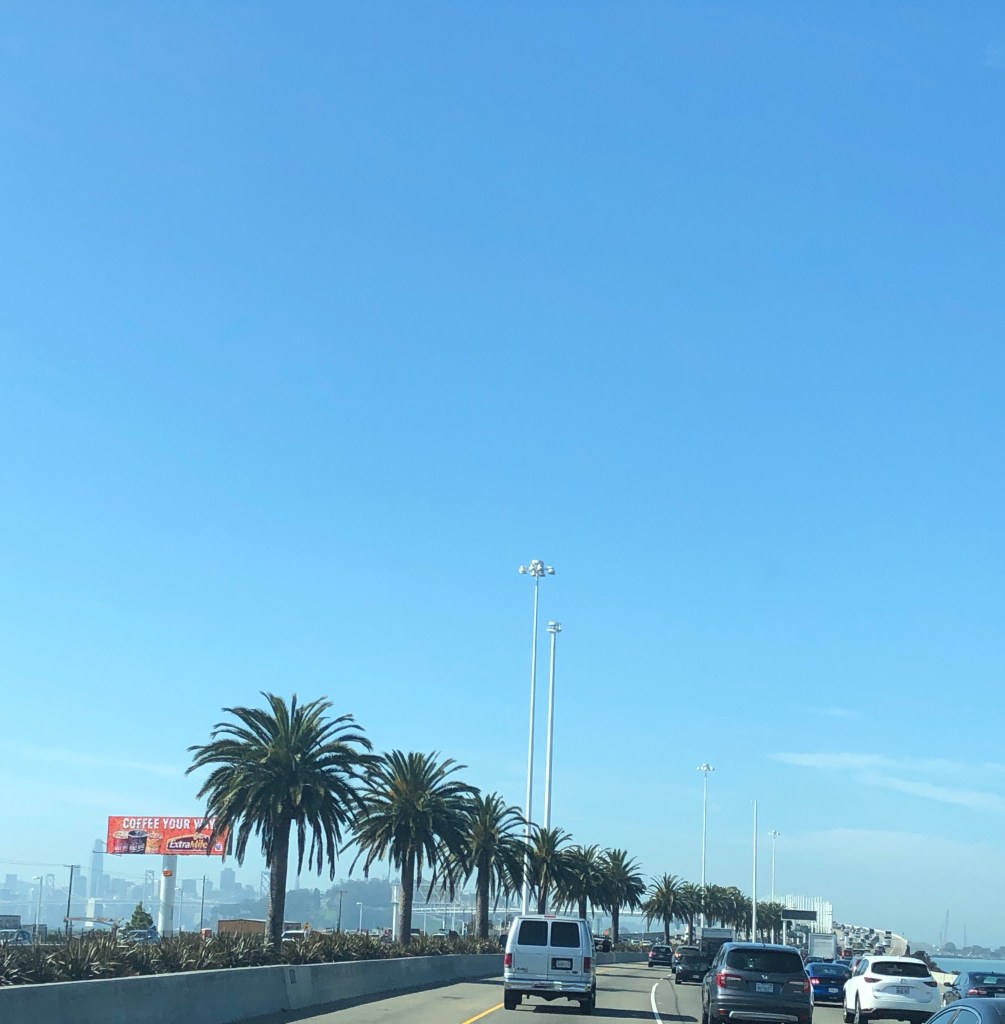 Right on 10am John , Jordan and I set off for San Francisco. It’s a beautiful warm, blue day and they are taking me all the way to San Francisco. About 1.5 hrs with some great signs along the way.