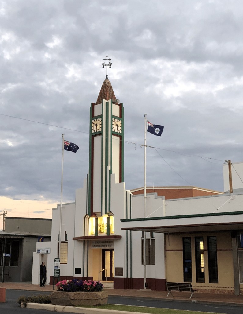 Feeling full and relaxed we headed west to St George. A small town making an effort to welcome tourists. Sadly due to rain their special picnic races this Saturday have cancelled. No not covid. Rain. The track is too muddy.