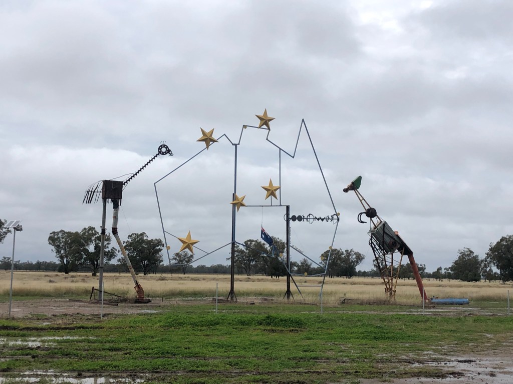First stop, Bollon. Coffee at Deb’s where all the caravaners – (known as ‘grey nomads’ here in Australia) stop. They are all over 60 and have grey hair – sorts & flannelette shirts for the men. Fleecy jackets & jeans for the women.