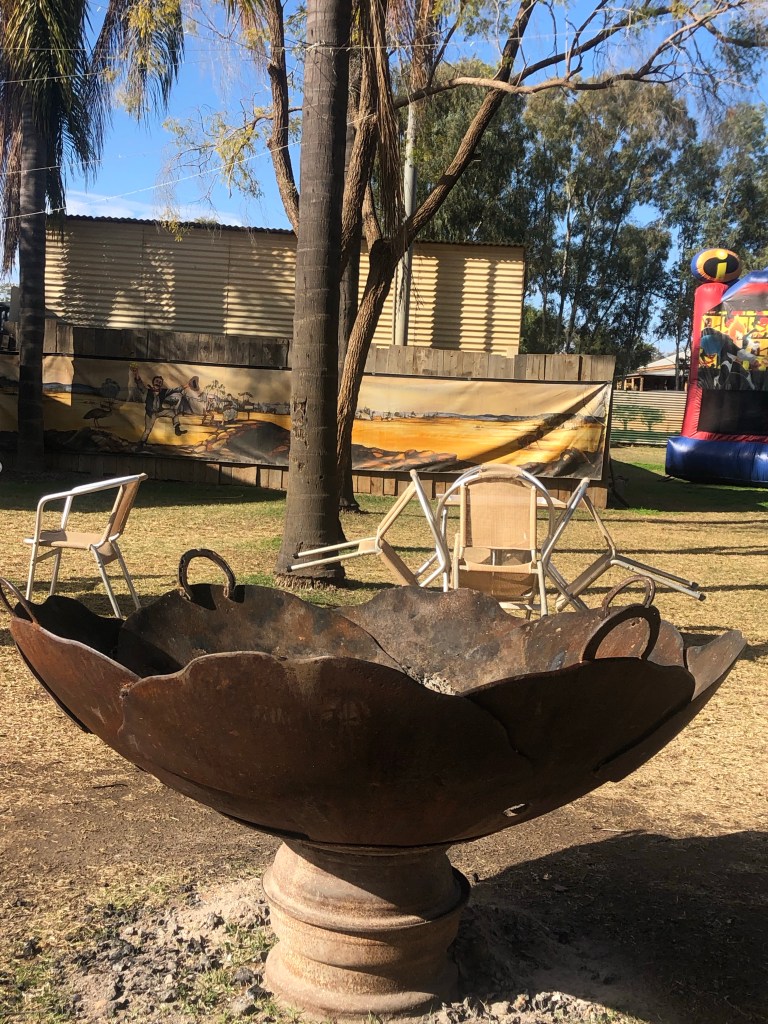 We joined a table towards the back of the area – near the fire pits and got lucky. We sat with some lovely locals. Sue from Charleville, Lisa from Cunnamulla, both mental health nurses for Qld Health. Their husbands were there and made us very welcome.