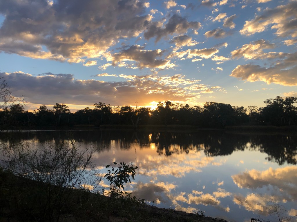 Jock advised us not to miss the sunset over the river so we moved back to town. We checked into the motel along with the local road workers in their big Utes and dirty boots.
