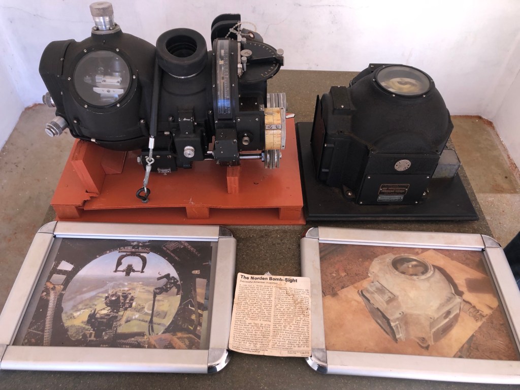 That secret, still not written about in the brochure was the Norden Bombsite. It is a piece of top secret machinery used during the war to pinpoint bomb sites during the day.