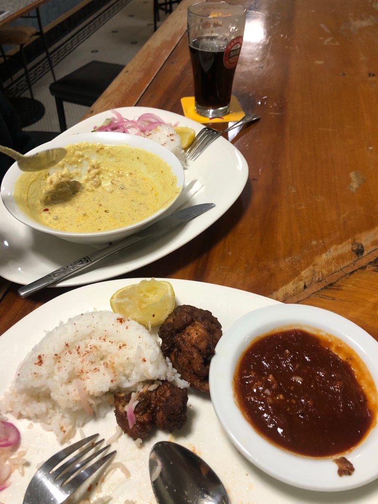 Dinner called so we inquired. Bob the owner suggested Malaysian. Not what we expected. They had the usual pub fare. Burgers. Pizzas etc. but he said they were trialing Malaysian curries. We decided to live dangerously.