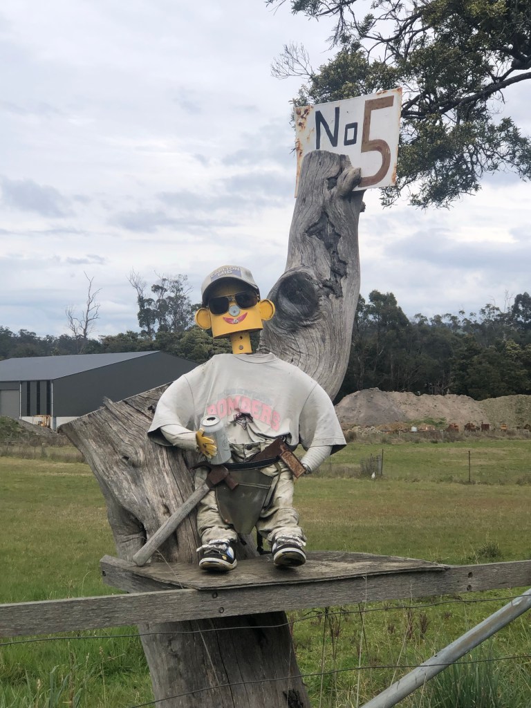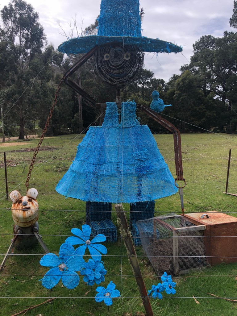 This blue man was standing in a field and was made by the local men’s shed to highlight depression suffered by many farmers. The accompanying notes outlined how to recognise symptoms and how to help someone.