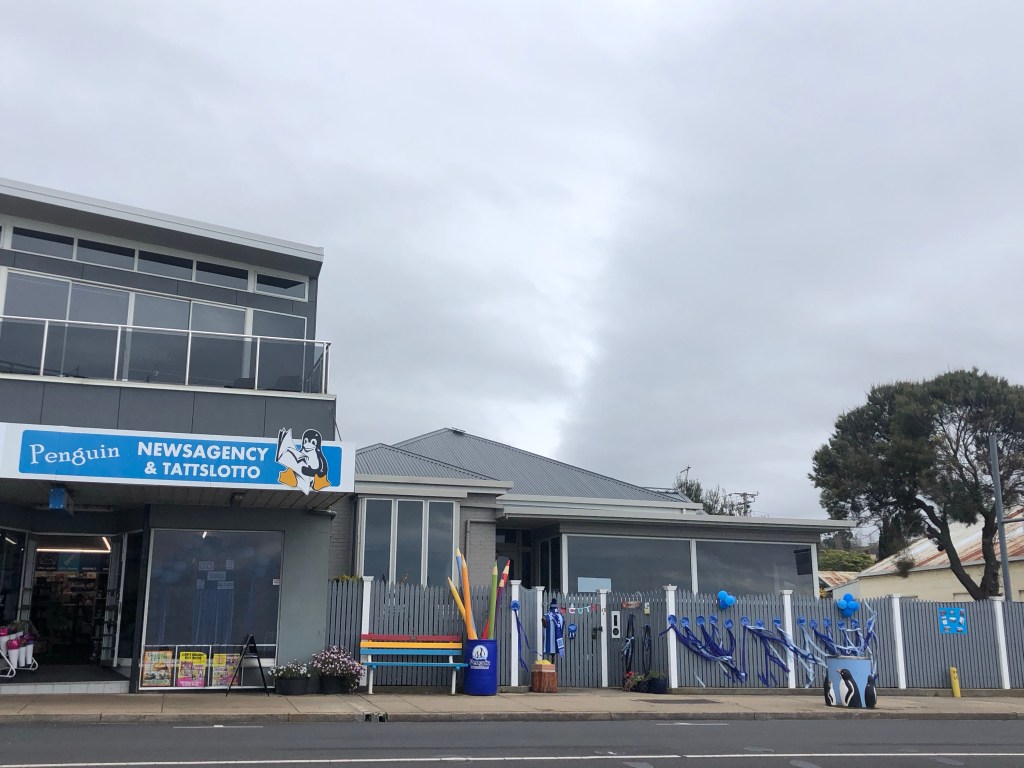We arrived to a pretty town festooned in blue. Their local footy team has made the Tasmania finals. Go Penguin.