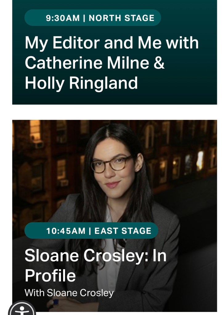 The program is for me a little hit and miss. Wednesday I jumped between Sloane Crosley and Holly Ringland and her editor.