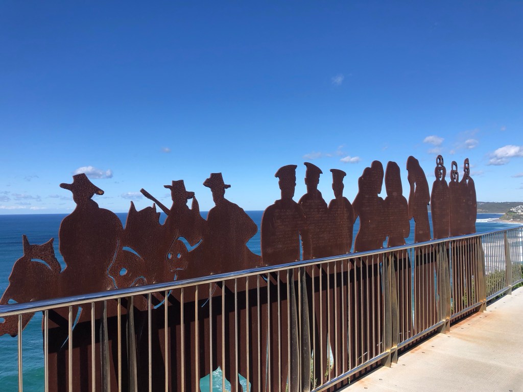 Back in the car we drive to Bar Beach left the car and walked north to eventually join the Memorial Walk. A new walkway suspended above the cliffs and rocks. It’s a tribute to those who have served. It was very windy walking along and we saw several hats being swept over the railings.