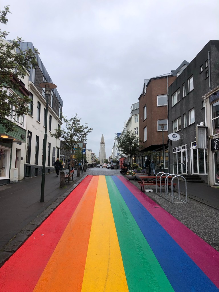 We walked slowly down the street from Leif Ericsson statue. Lovely quirky shops and lots of ceramic. Then a beautiful coloured rainbow finishing to the end of the street.