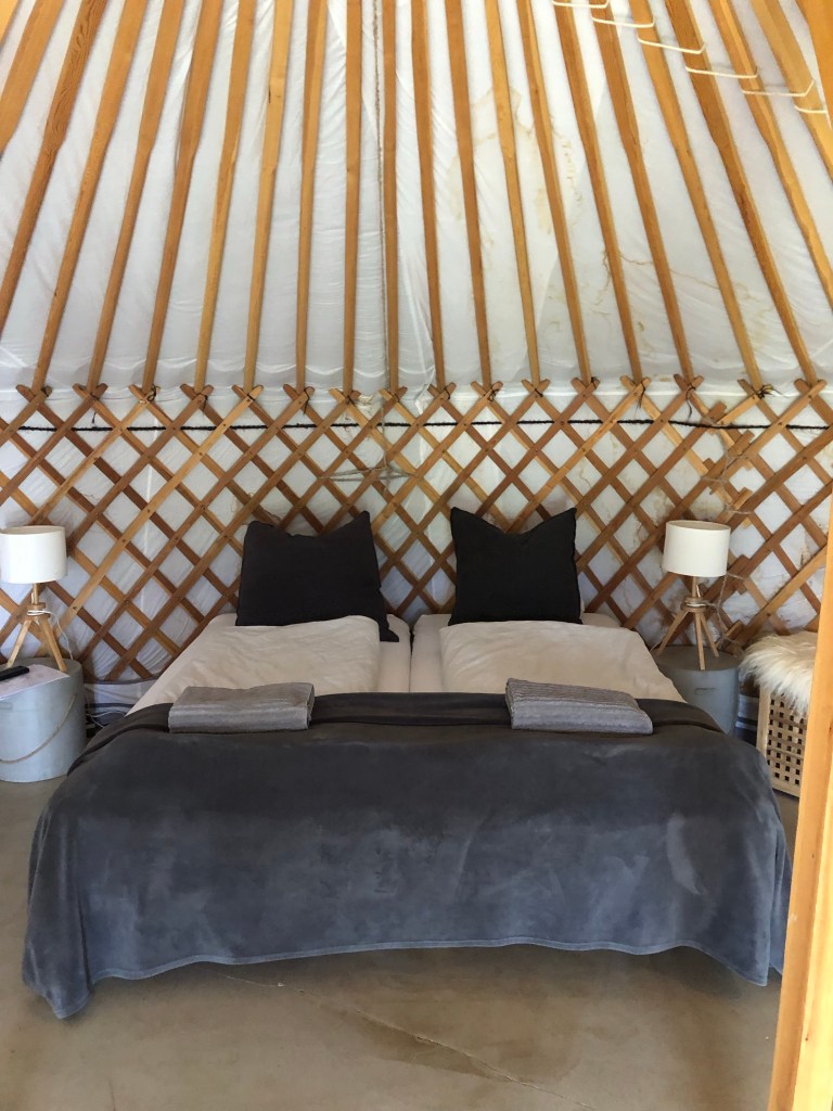 The yurt had a heated floor so was cosy and with the rain putter patter on the canvas roof was the only sound we heard as we drifted off into a sound sleep.