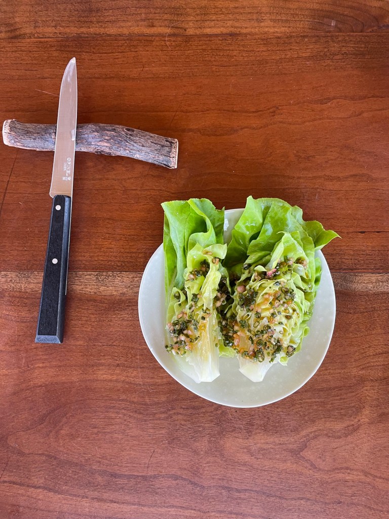 First course arrived. A grazing plate of vegetables with a beautiful tahini miso dipping sauce.