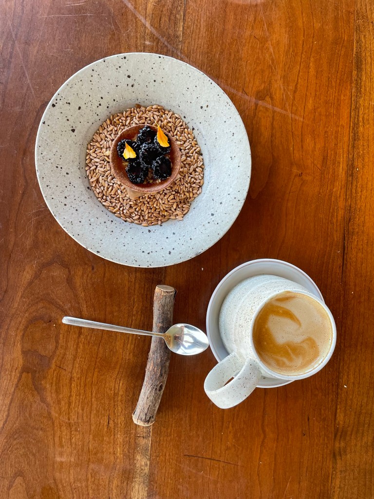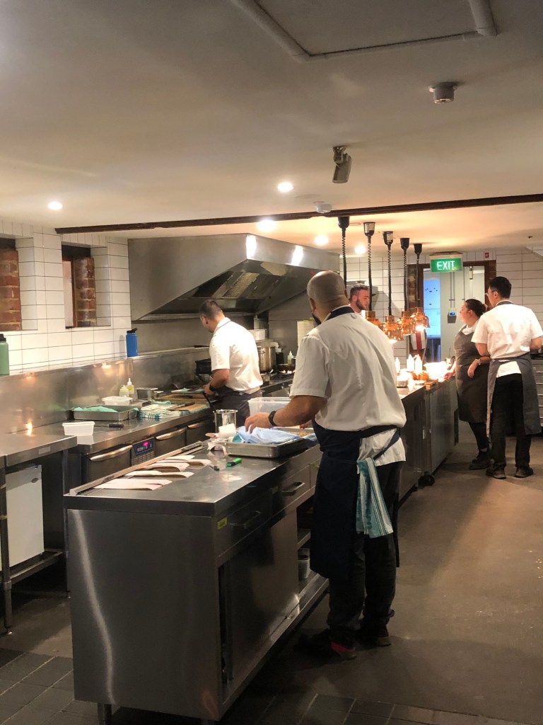 The entrance to the restaurant was boss the kitchen where everything was laid out ready to go. It was so clean and calm and a little hint of what was to come. We were seated in the window of simply styled room overlooking the hills of vines.