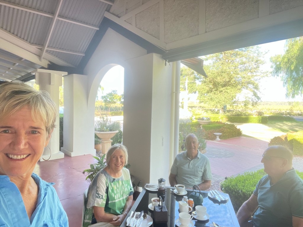 We explored Tanunda, a stylish little wine town with lovely little shops mostly closed as today is a public holiday. But we found a very crowded coffee place and enjoyed coffee in the shade outside a museum!