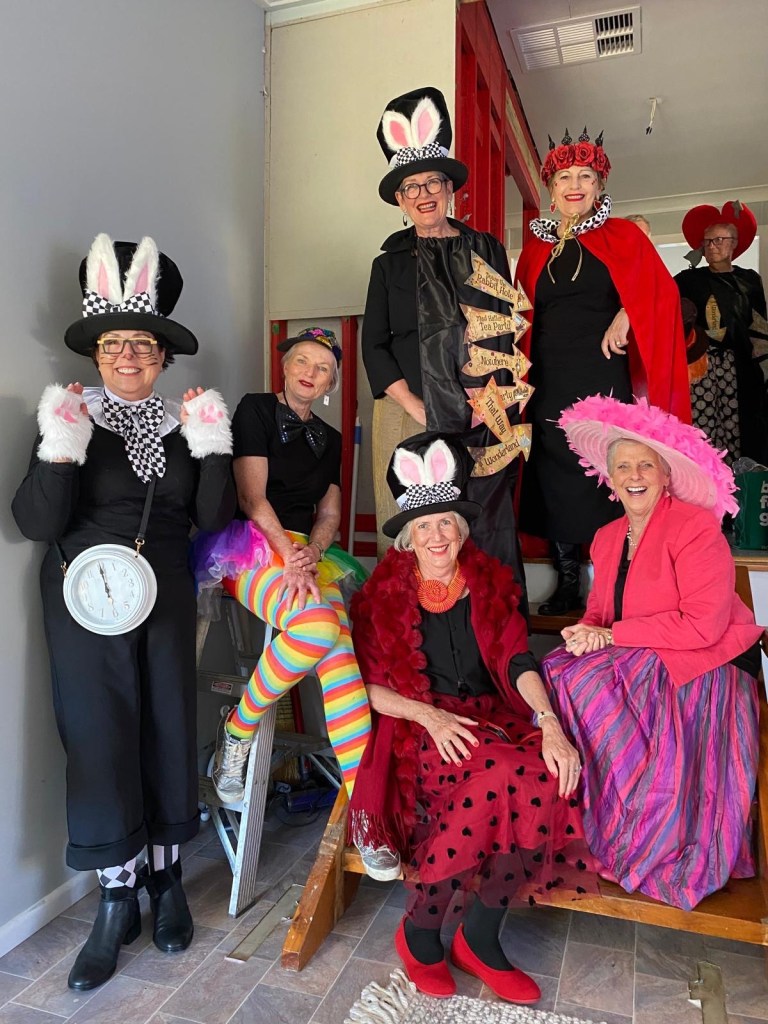 An hour later we poured out of the bus and noticed no one else was dressed up. There were a few simple hats but no one else came as the mad hatter, the rabbit, the scarecrow the witch, the wizard, queen of hearts or jester.