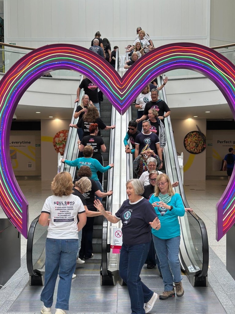 Next stop was a shopping centre. The acoustics were great and again lots of people joined in.