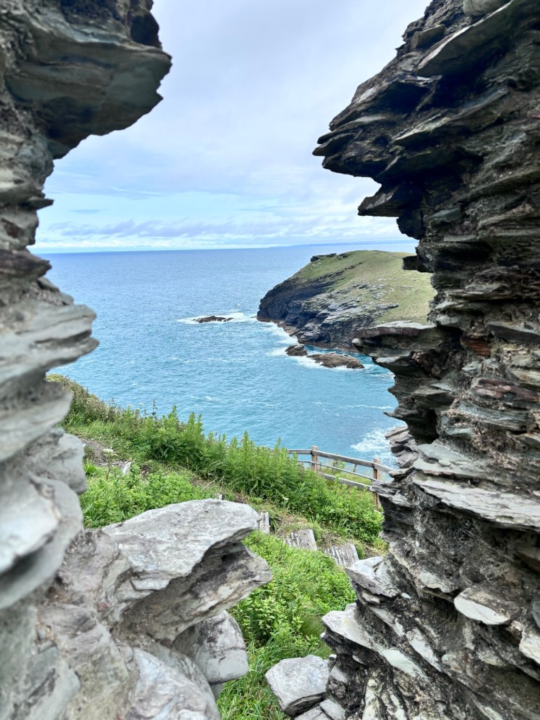 We walked up hill and down stairs to get to Tintagel Castle. Built in 1230. It’s on the coast and was the seat of the Cornish kings.