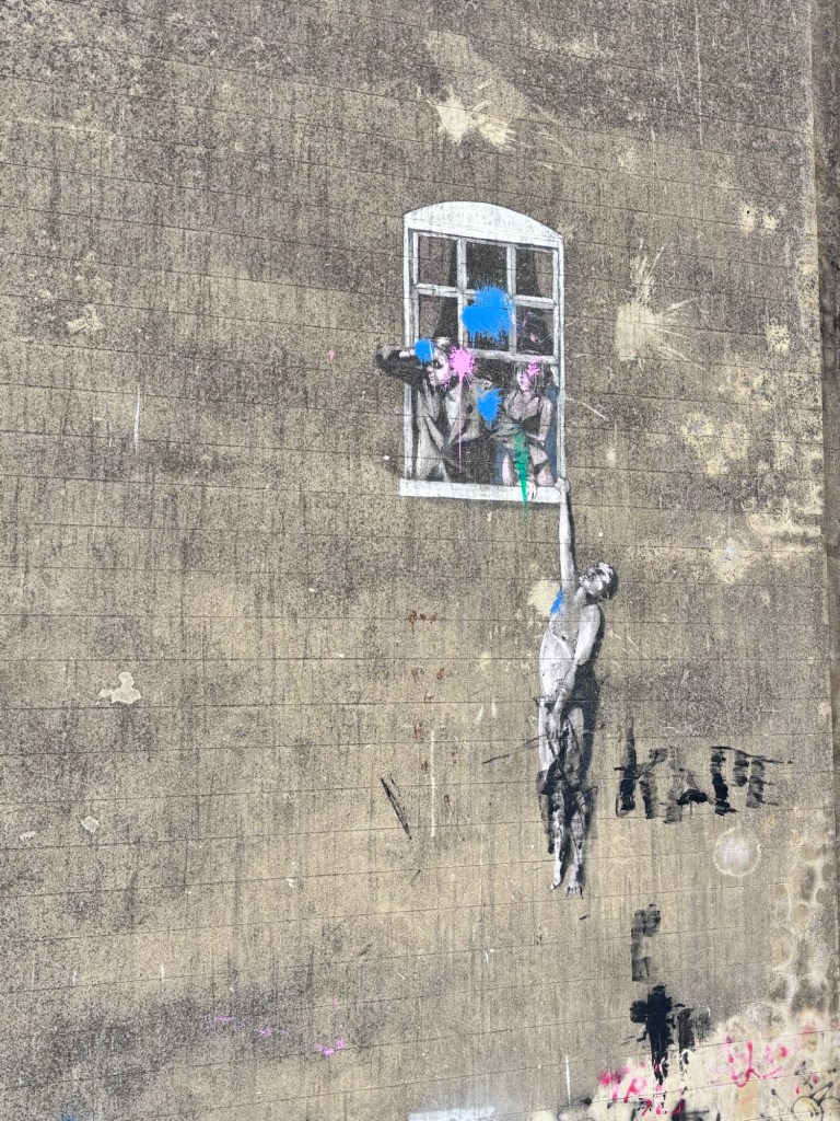 Back on the bus to the centre of Bristol and another bit of Banksy street art