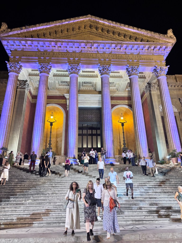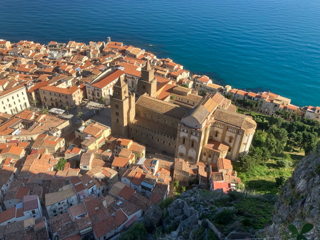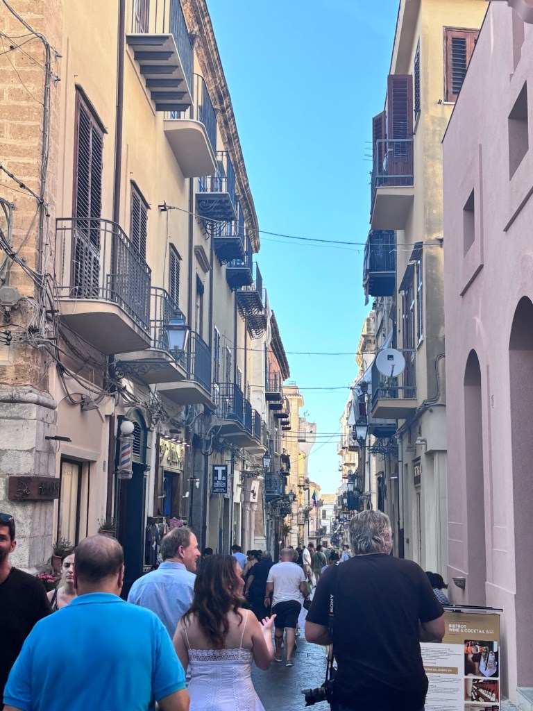 It’s the seaside playground for many Italians. It has a long seaside promenade, an old town , lots of churches, heaps of restaurants views to die for, a castle on a high hill behind the town and is only 52 mins by fast train from Palermo.