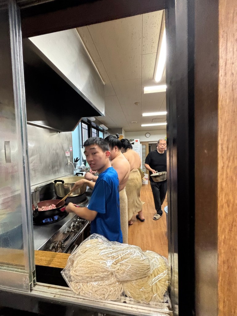 The throw salt in the ring before starting……. a ritual of respect and they stamp to scare off evil spirits. They grow their hair long to wear a top knot , can’t drive or wear normal street clothes. They eat twice a day and sleep after a meal to allow the weight to increase! Something I don’t want to do especially in this holiday!
