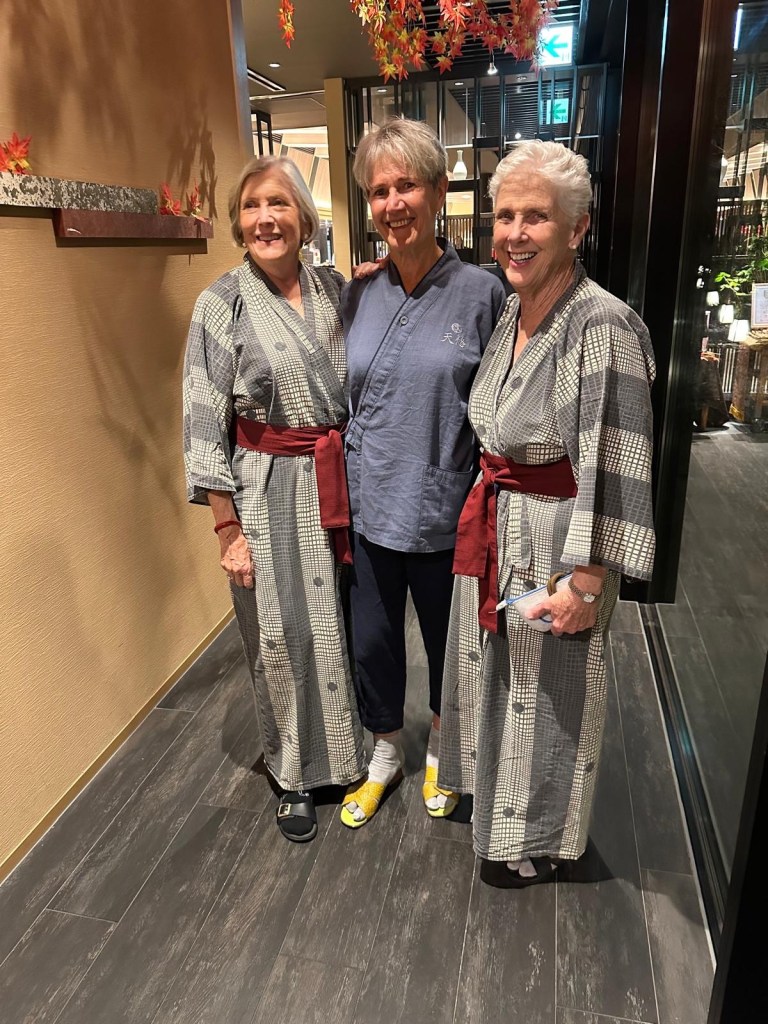 A free bus saved us from walking 19 mins uphill which gave us time to get to our very comfortable rooms and be ready to go to dinner at 5. Yes very early but we decided it suits us after big days and also gives plenty of time to relax in our lovely room with a private onsen on our verandah.