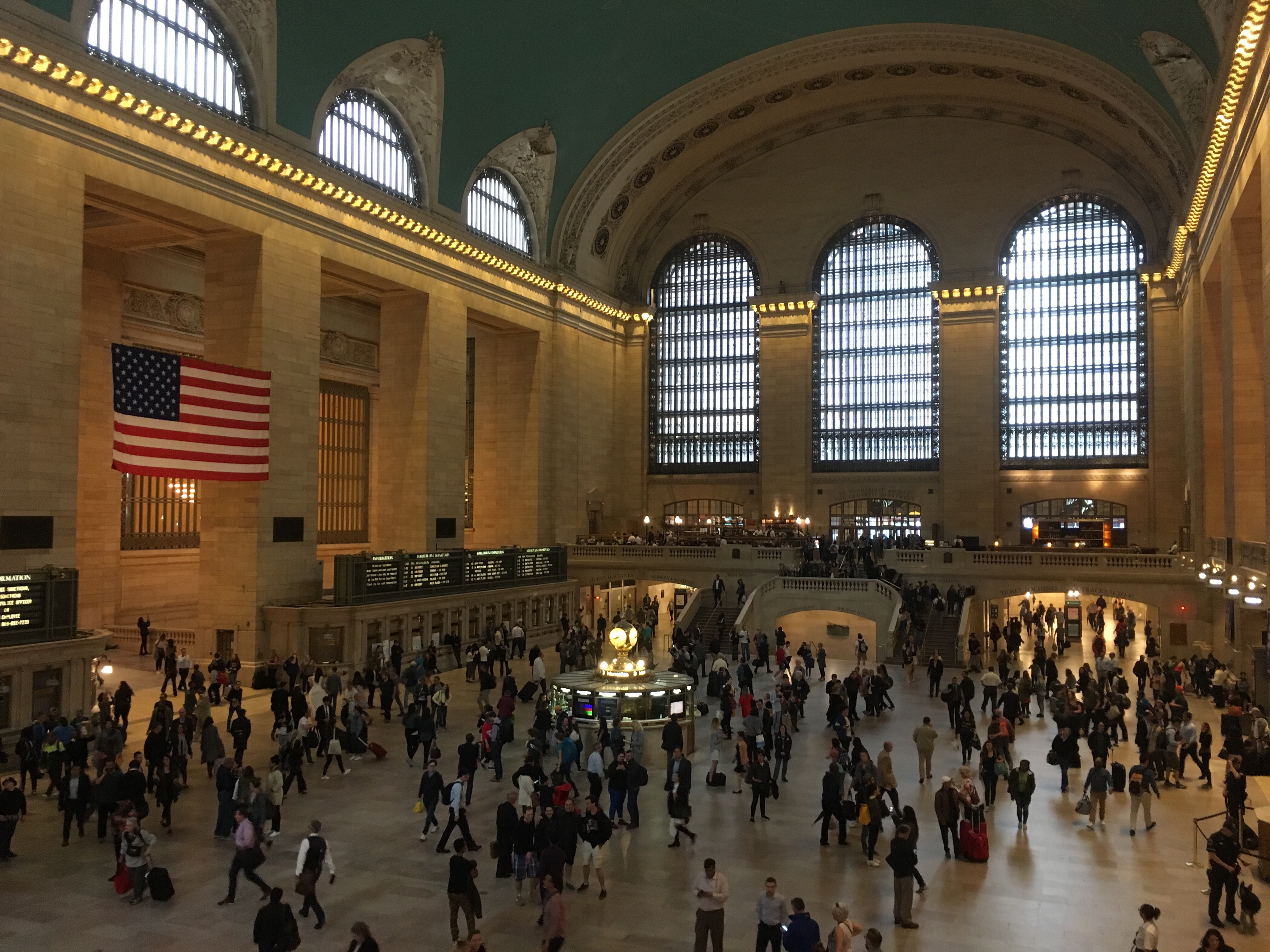 We met at Grand Central station. This is a beautiful station. The spaces are grand, it’s like stepping back in time. Built between 1903-1913 there are 56 passenger tracks. Built in the Beaux Arts style you could think you were in France – until you spot the eagle on the clock. There are cafes, wine bars, an oyster bar, shops if all kinds, a whispering corner, and of course trains.