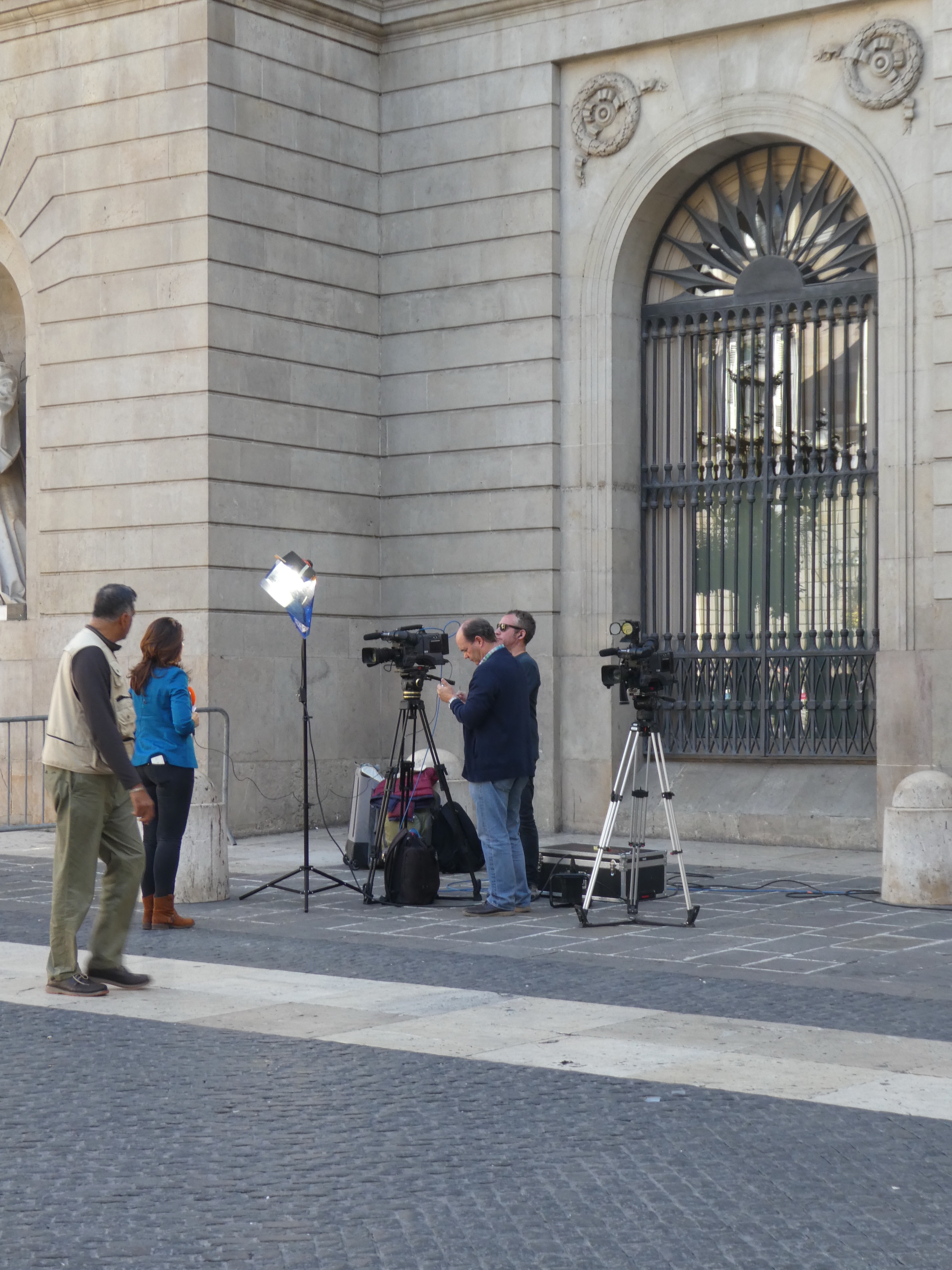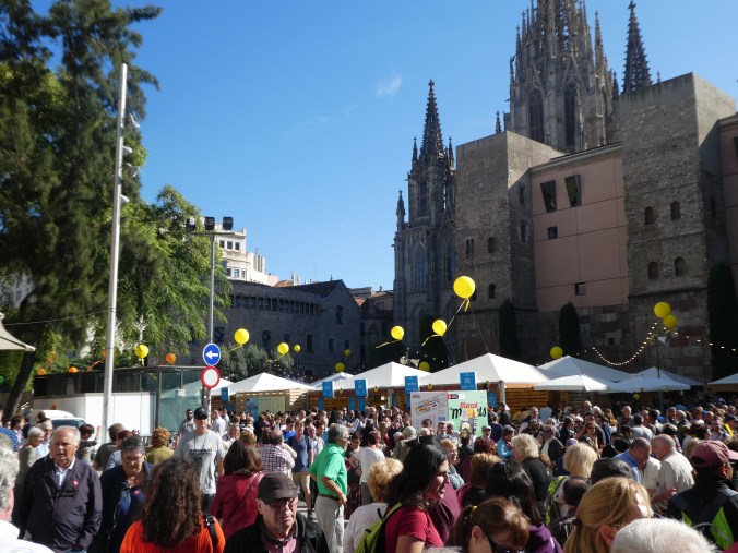 The flags of Catalunya are out in support. There was a huge peaceful demonstration yesterday. It’s proving to be a big issue for the government today. So, every country has its issues.