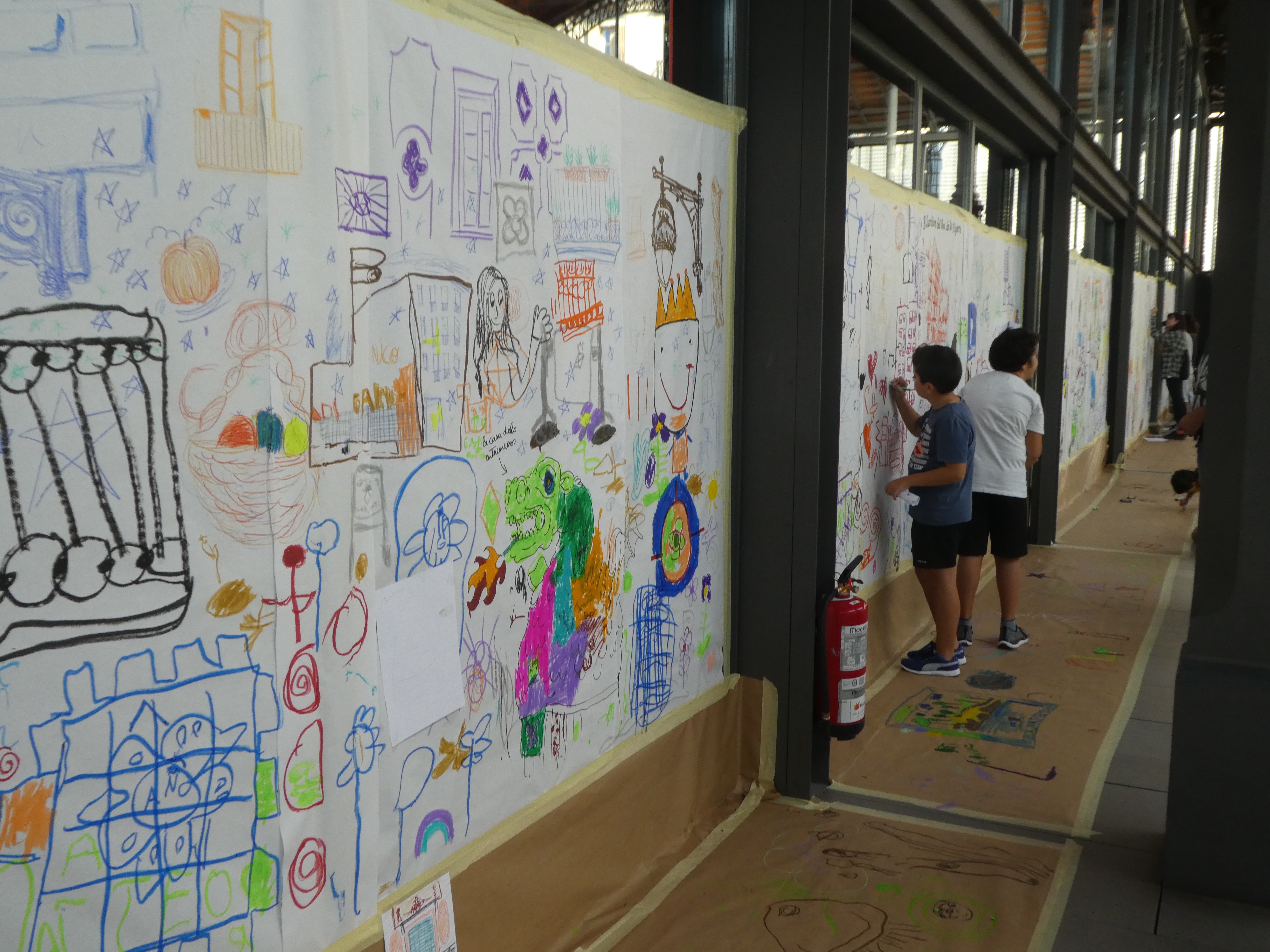 Parents were there with their kids drawing , in between drinking wine and eating.
