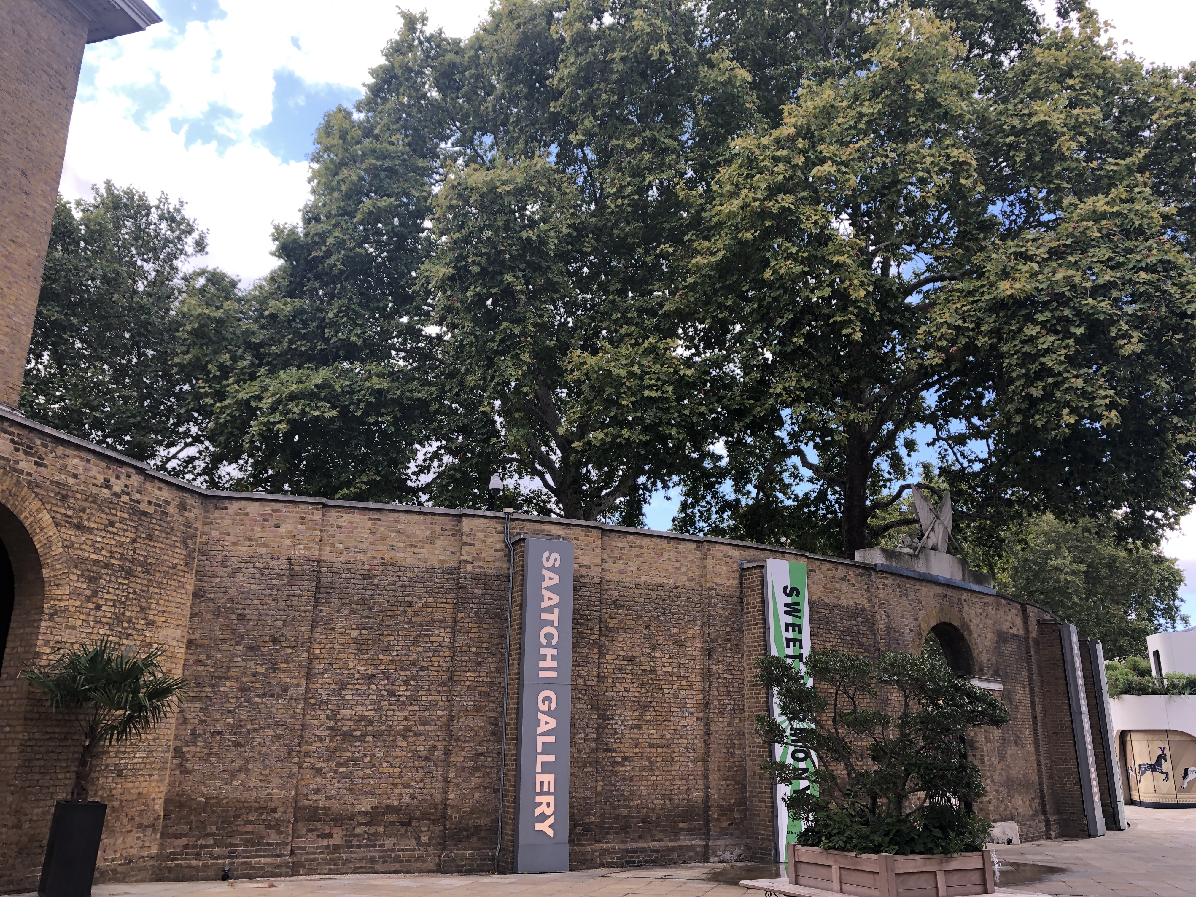 the Saatchi Gallery has a lovely setting with a small oval in the front, tall white pillars and flags advertising Free Entry. That’s good I thought. I went in and the rather sullen lady on the desk looked at me with no smile and said ‘£10’.
