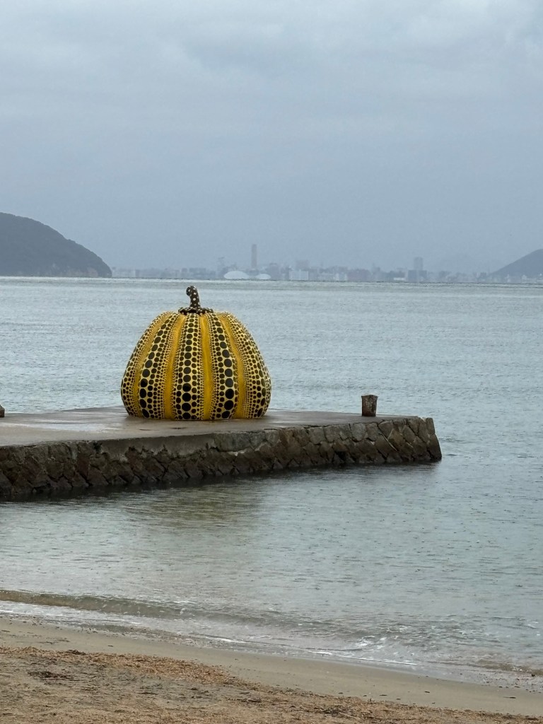 We walked along the coast road and found the iconic pumpkin. Yayoi Kusama is famous for her polka dot art.