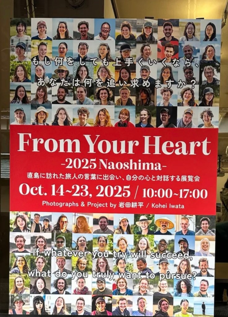 We went inside and met the artist photographer Kohei Iwata and found ourselves taking part. He was exploring the themes of success, life , motivation and inspiration. We filled out the answer to the question…. Mine was. ‘What big change did you have in your life and how did it inspire you.’ Next thing we were having our photo taken ….